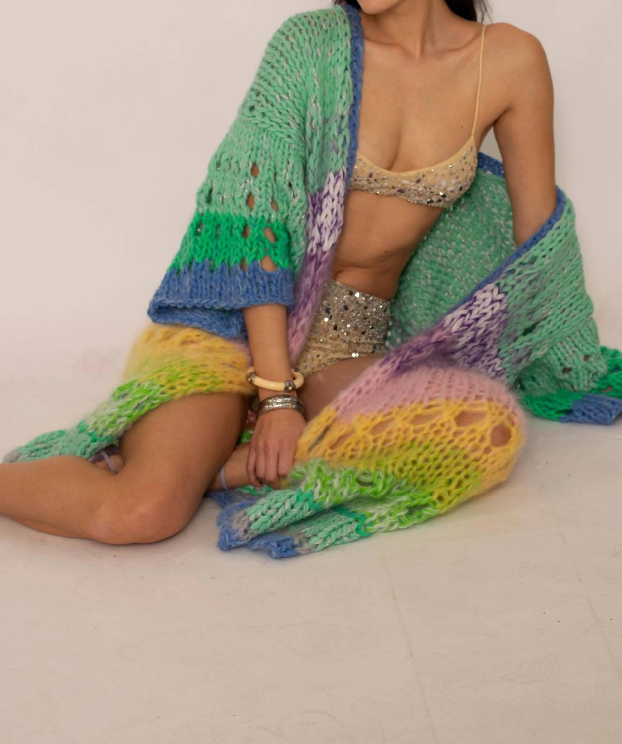 This cardigan will be a sweater-rotation favorite. Introducing the Jace Cardigan by Kitty van Coesant, a vibrant piece perfect for the spring season. This women's cardigan features a patterned design in Mint/Multi with long sleeves and a V-neck, catering to a boho chic aesthetic. Made for holiday parties, it offers an effortless pull-on closure and a seamless design without pockets. Originating from Kitty van Coesant's collection, it’s an ideal choice for the fashion-forward woman.