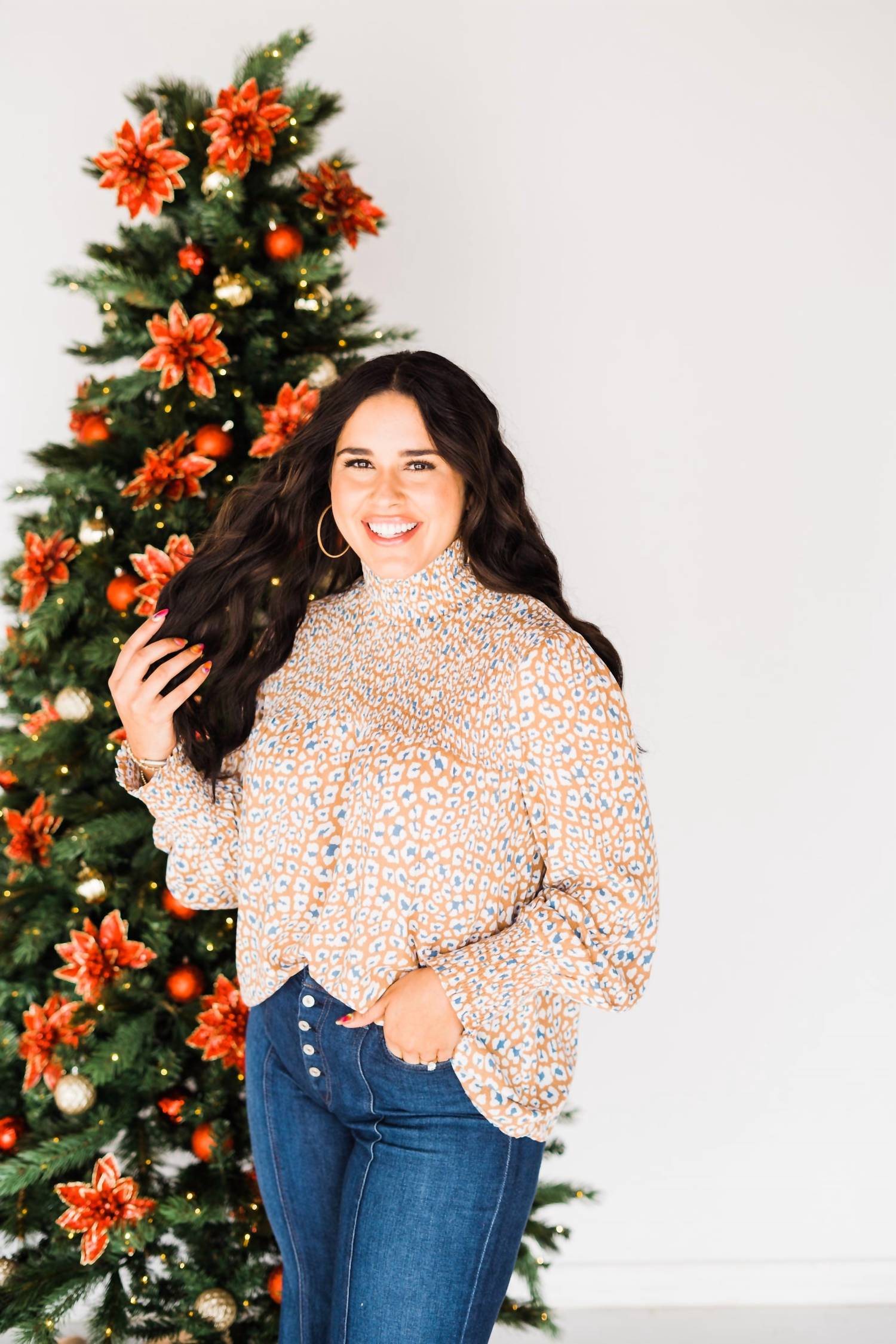 A timeless blouse that will never go out of style. Elevate your wardrobe with the Gigi Mock Neck Top by Layerz Clothing, a standout piece in a Beige Multi palette perfect for the Maximalist trend. This women's blouse features long sleeves and a stylish mockneck design, adorned with an eye-catching pattern. Closure: Pull-on. Care: Hand wash and line dry.