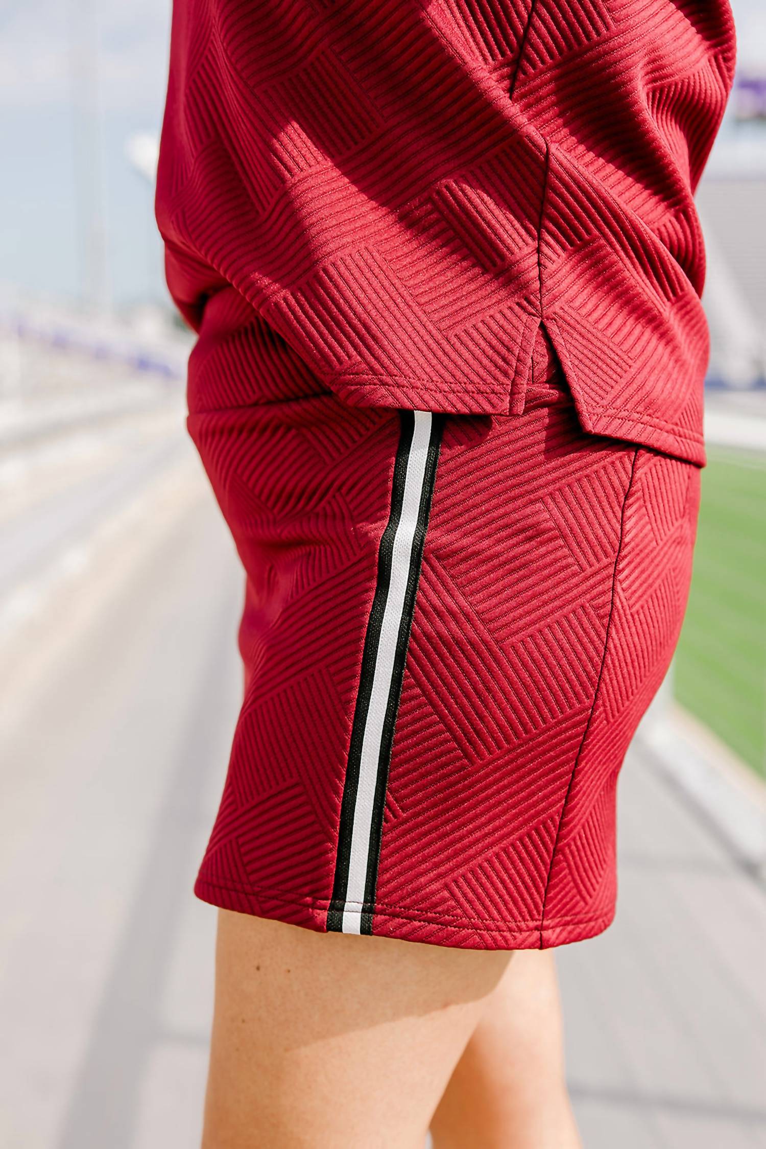 The go-anywhere and do-anything skort that you'll love to live in. Elevate your summer wardrobe with the Jade Textured Skort by Layerz Clothing, offered in a striking maroon hue. Crafted from a blend of 95% Polyester, 45% Rayon, and 5% Spandex, this skort combines comfort with a chic textured pattern. The pull-on closure ensures ease of wear, while its monochrome style fits perfectly with current trends. Care for this piece by hand washing cold, followed by line drying to maintain its vibrant look.
