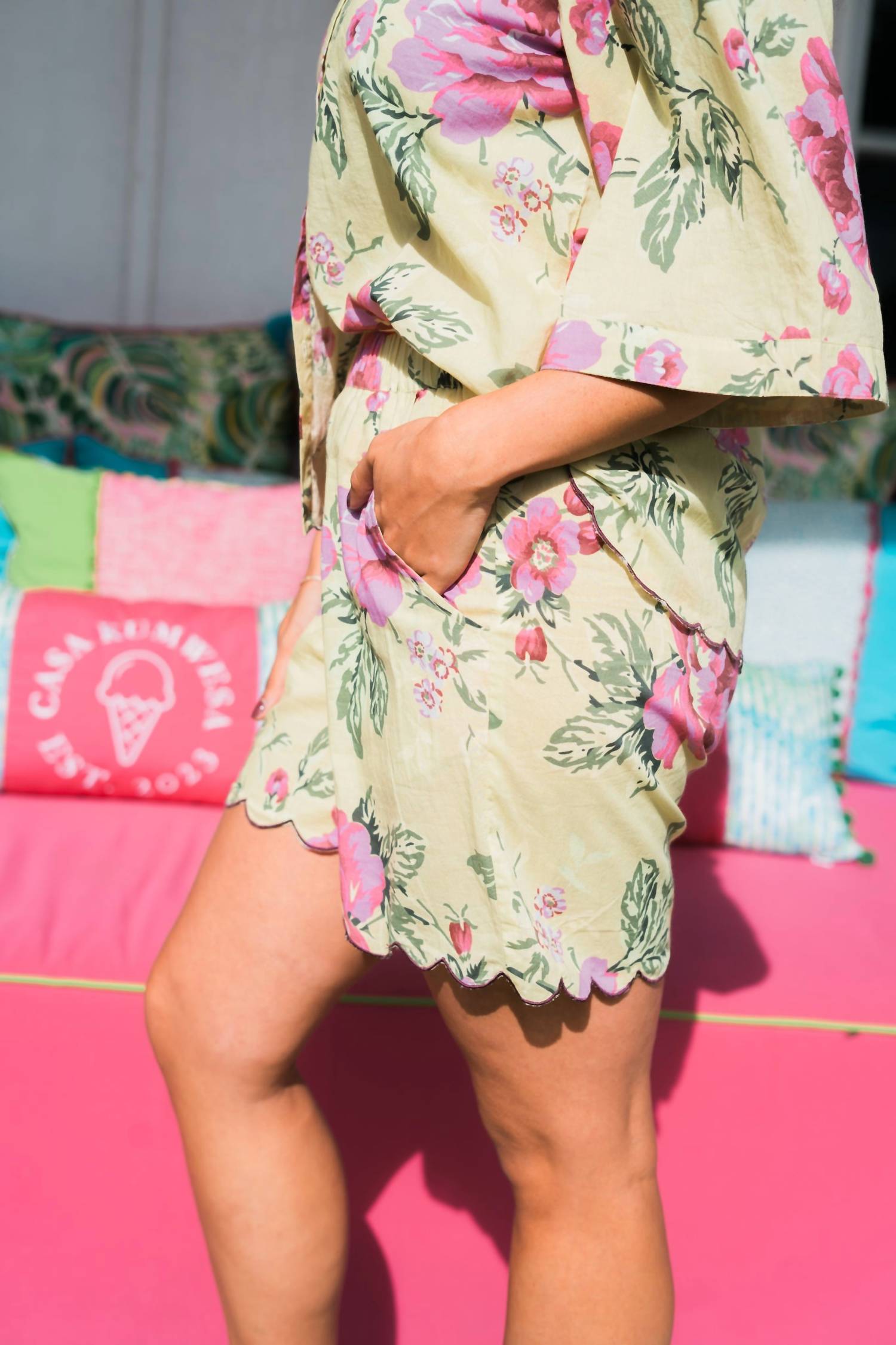 The cutest skort that combines style and functionality. Introducing the Noah Floral Shorts by Layerz Clothing, a vibrant and stylish addition to your spring wardrobe. These maximalist skorts in a yellow multi floral pattern offer a vacation-ready aesthetic. Designed with a convenient pull-on closure and handy pockets, they promise both comfort and functionality. Care for these shorts by hand washing and line drying for lasting wear.