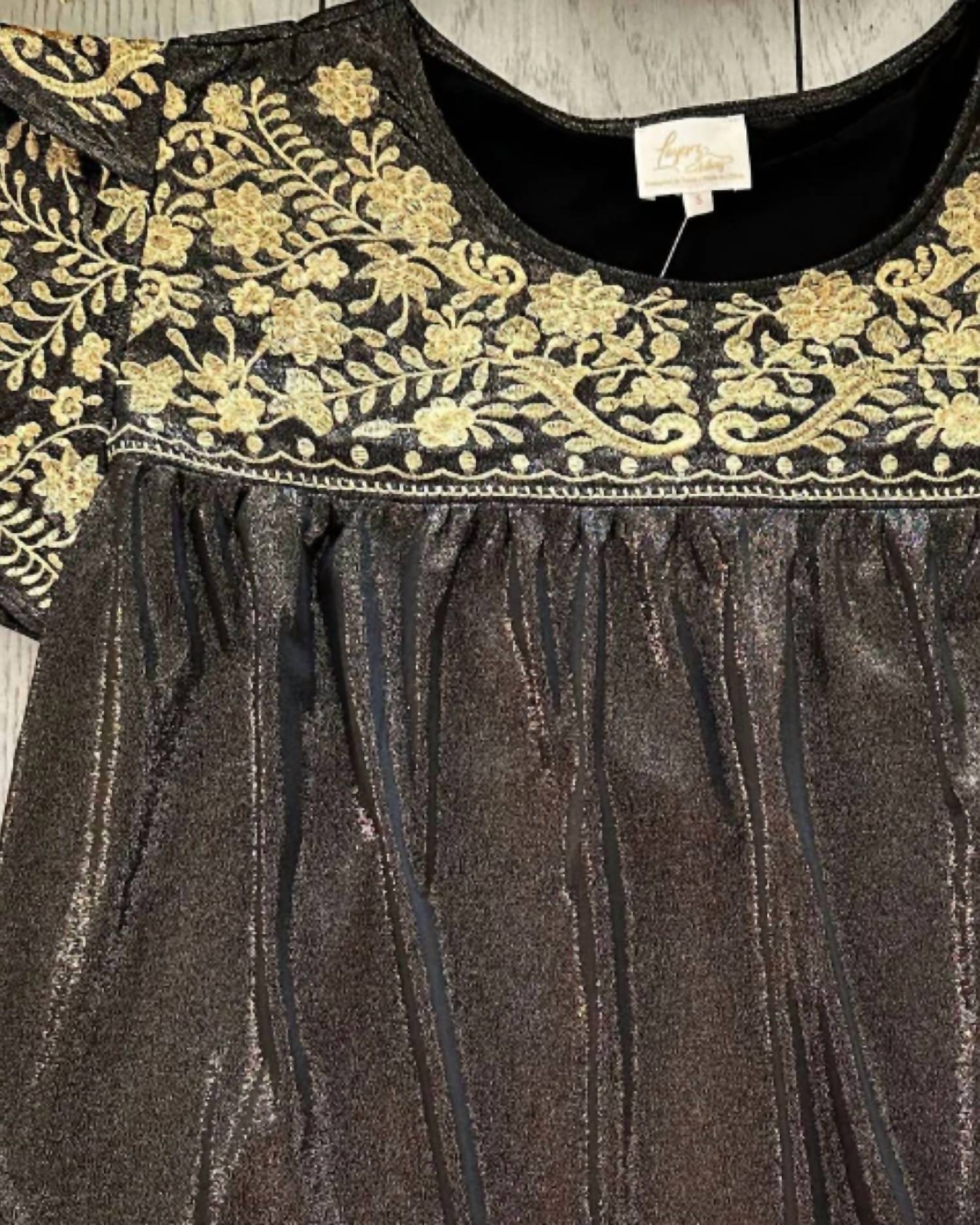 Pair this with your favorite jeans and slides for your next girls night out. Presenting the Rae Embroidered Top by Layerz Clothing, a standout piece for your summer wardrobe in Black Multi. This textured blouse showcases short flutter sleeves and comes in a crewneck style with pull-on closure. Crafted from 93% polyester and 7% spandex, it's perfect for maximalist trends. Care for it by hand washing and line drying.