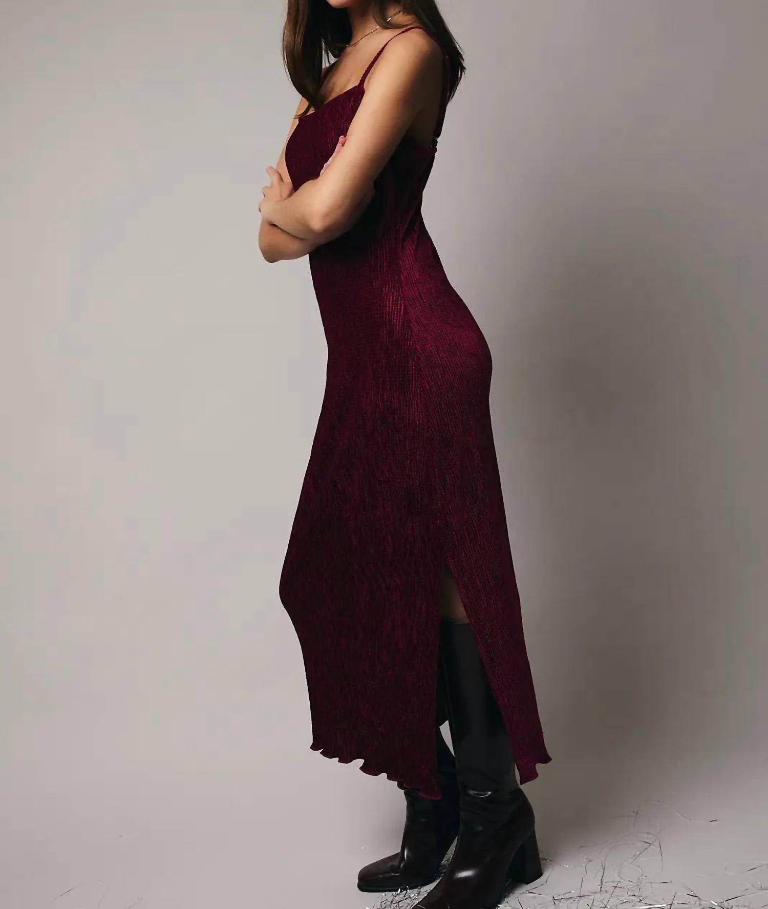 A midi dress so versatile, your options for wearing it are endless. Introducing the Velvet Midi Dress by LE LIS, a stunning choice for your evening events. Featuring spaghetti straps and a flattering scoop neckline, this dress showcases a sophisticated sheath silhouette in a rich berry hue. Crafted from a textured cotton blend composed of 95% Cotton and 5% Spandex, it offers a comfortable fit. Closure: Pull on. Care: Hand wash and line dry for best results.