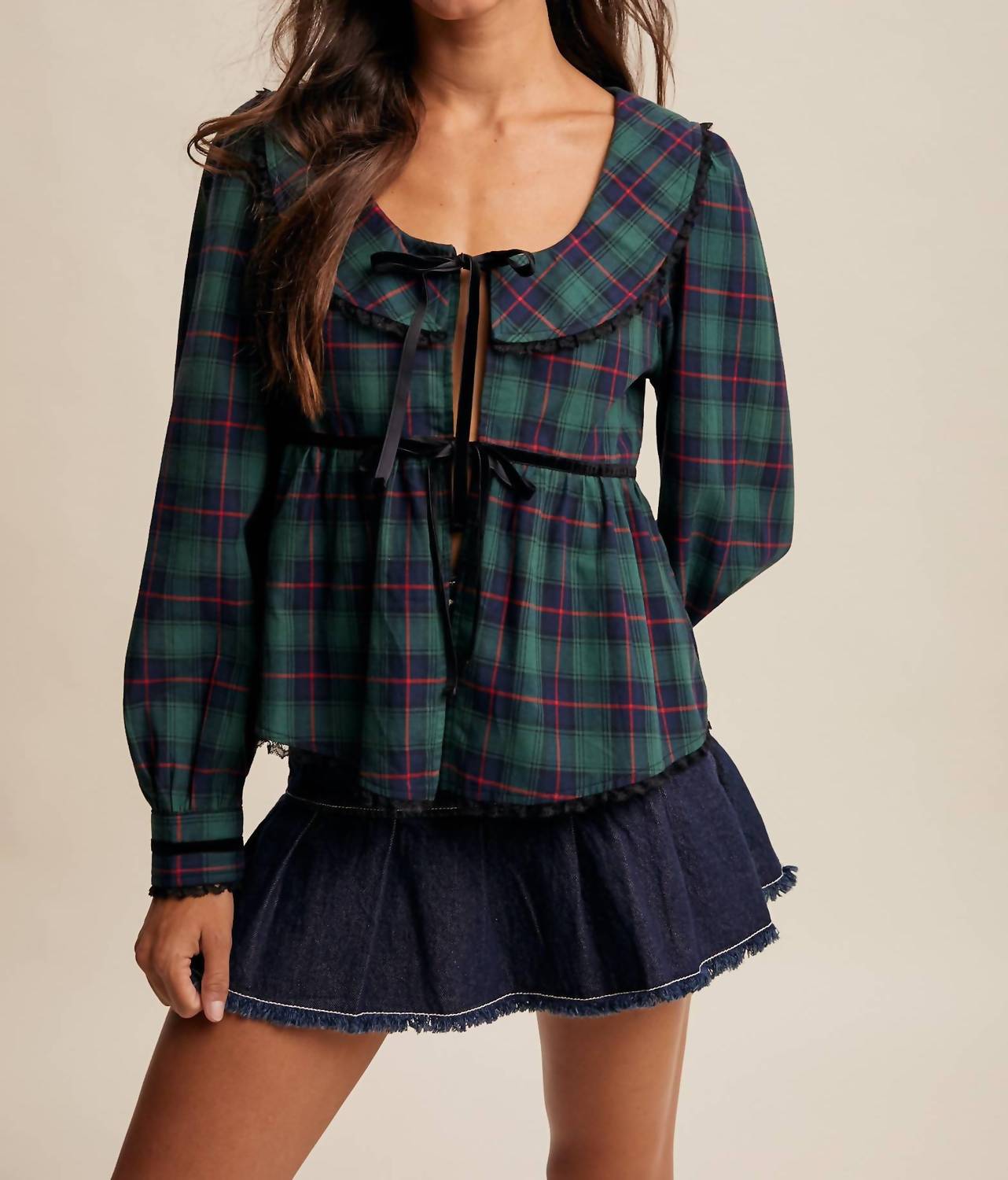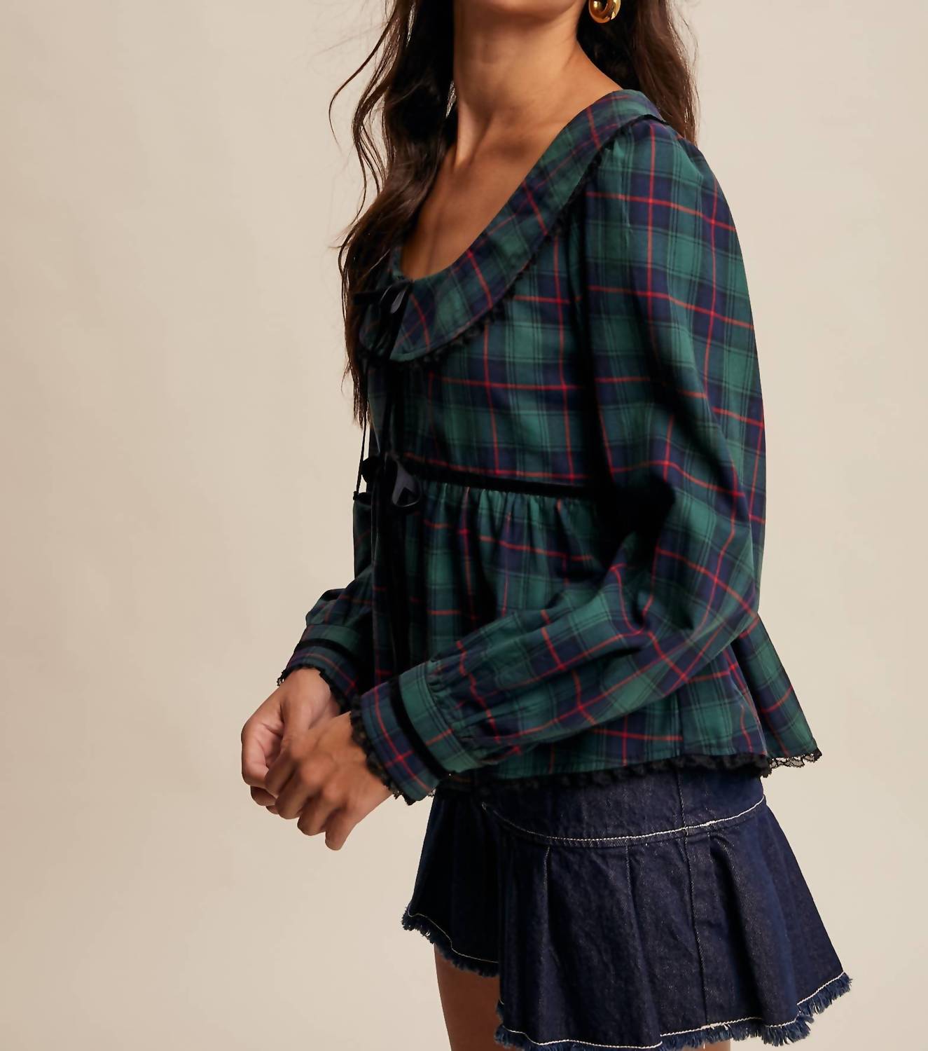 Listicle - Plaid Velvet Trim Holiday Blouse