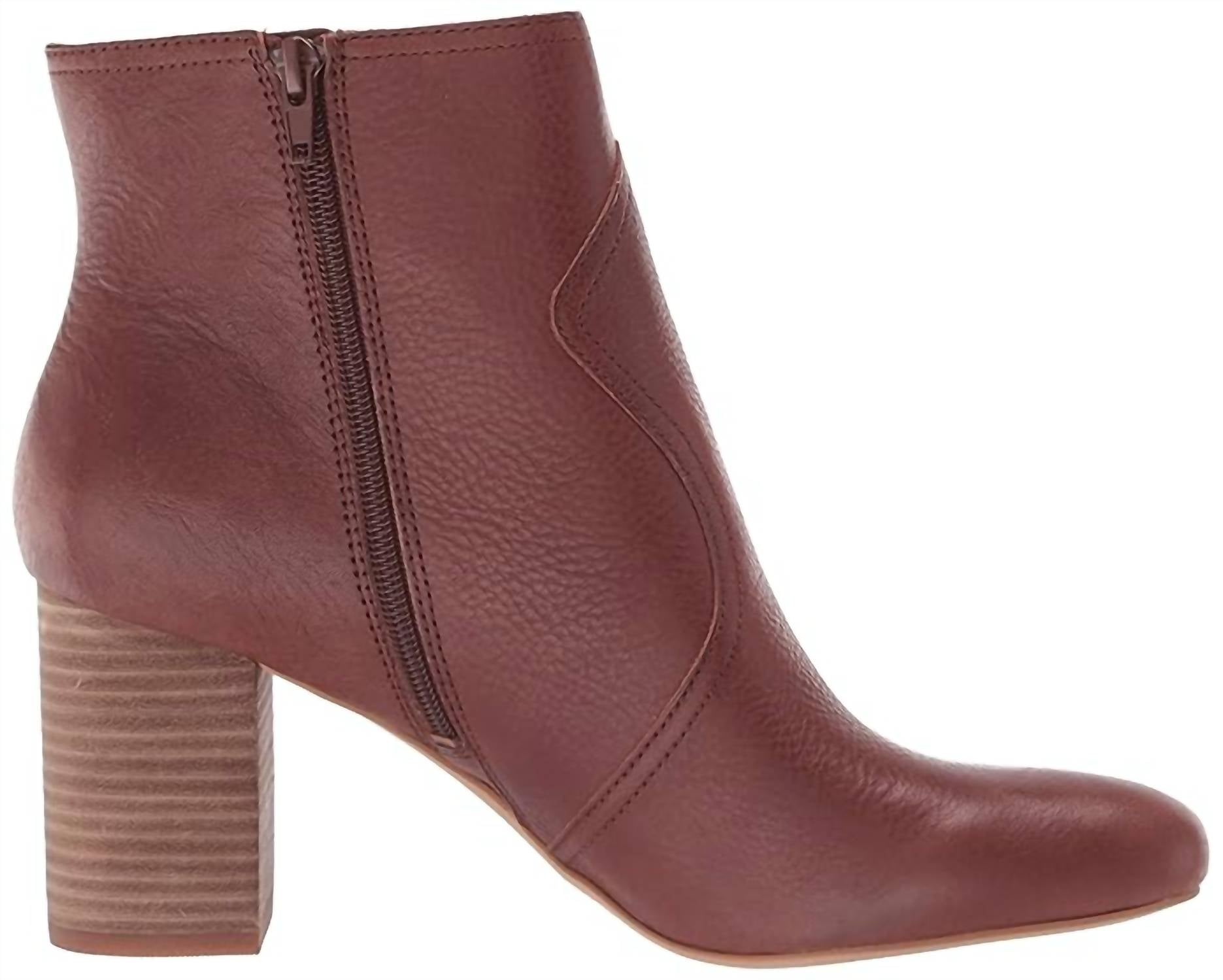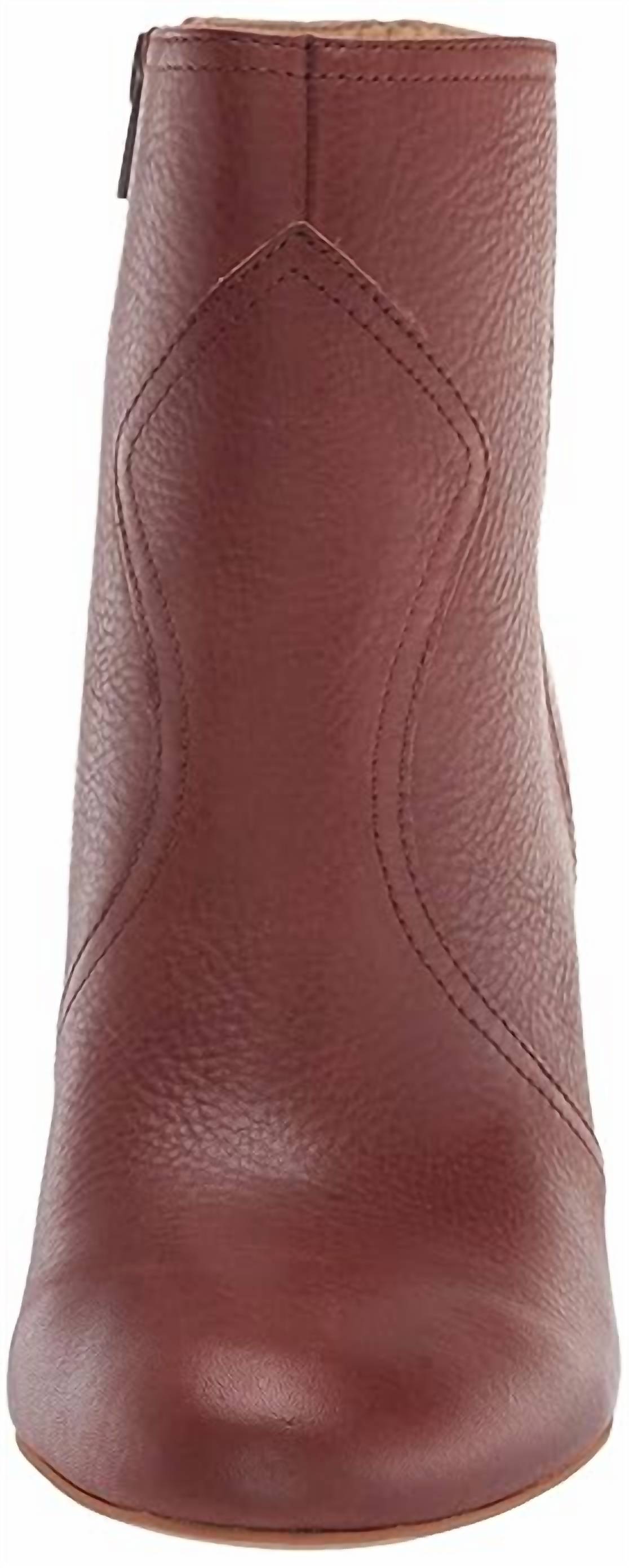 Say hello to the perfect, most versatile boot. The ankle height makes this style easily transition from day to night. Wear them with your favorite skinny jeans and tee for a more laid back look, or pair them with your favorite mini dress and jacket for a night out on the town. Western-inspired detailing distinguishes a versatile round-toe bootie elevated by a blocky stacked heel. Round toe 11" block heel 4.5" shaft Side zip closure Leather upper/synthetic lining and sole