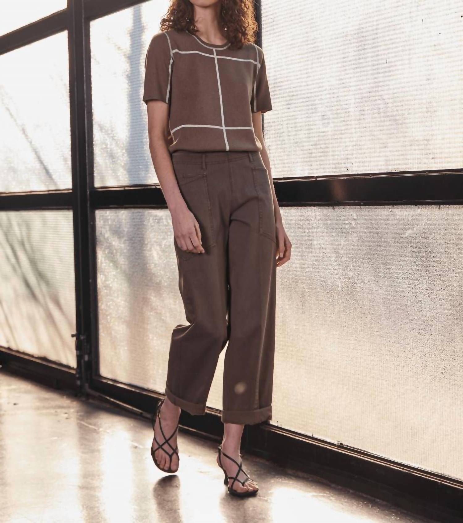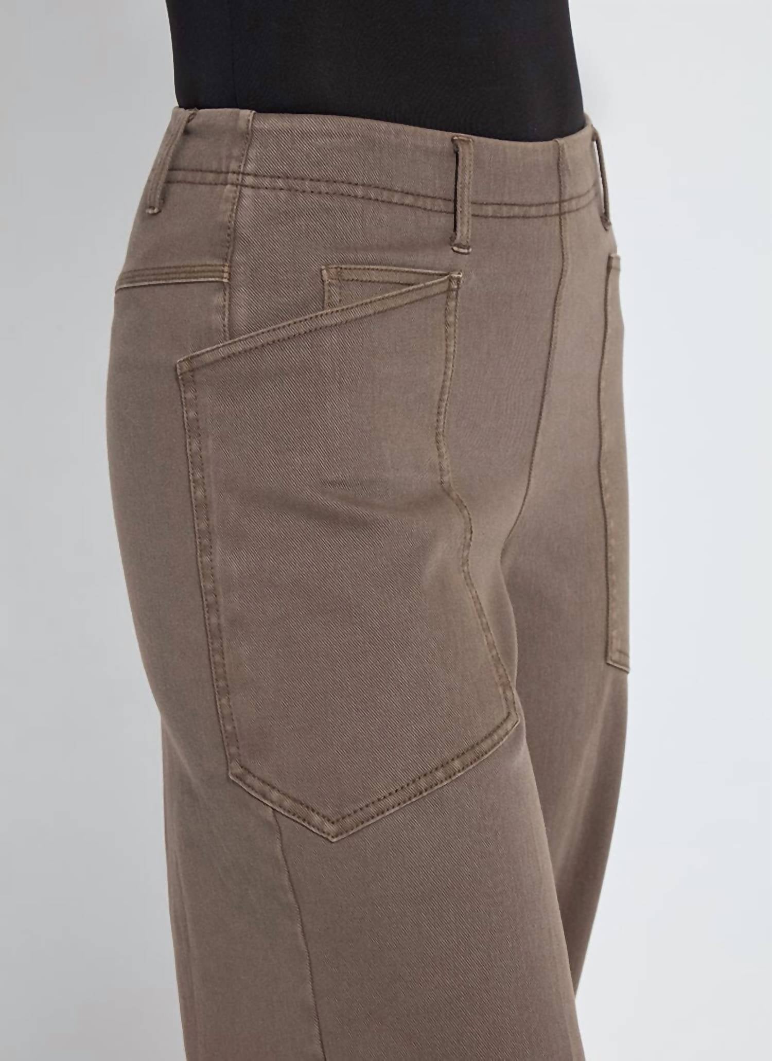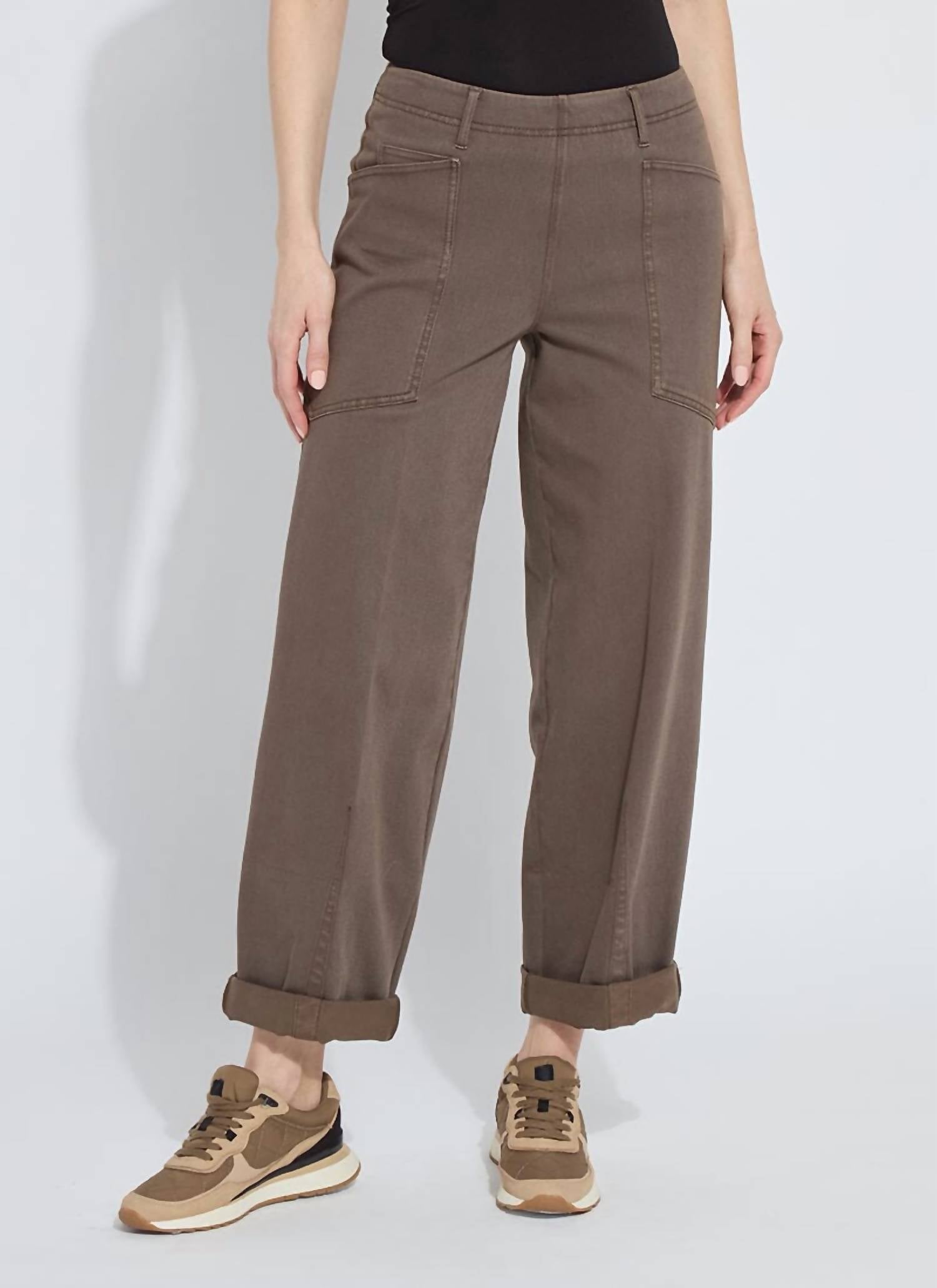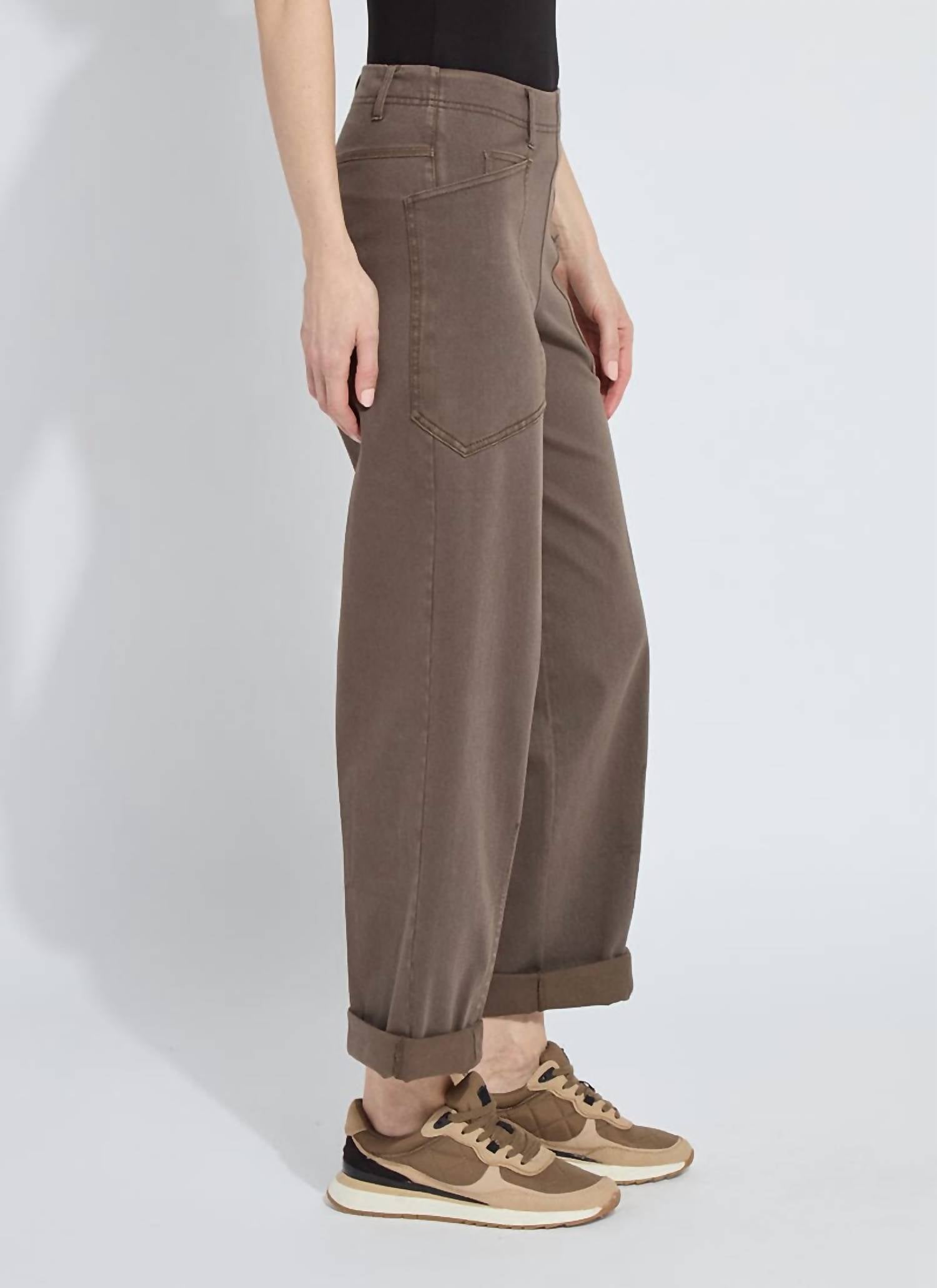 Upgrade your wardrobe with these cropped pants, designed to merge sophistication and wearability. The tailored fit ensures ultimate comfort during long days or nights out. Meet the Penelope Curved Cuffed Denim by Lyssé, designed for both comfort and style with a relaxed, high-rise fit. Crafted from a cotton blend of 95% cotton and 5% spandex, these brown denim pants feature a patented stretch waistband for optimum comfort and smoothing construction. Convenient pull-on closure and functional pockets round out this taper-legged design, making them perfect for a monochrome look. Simply machine wash and tumble dry to keep them looking their best.