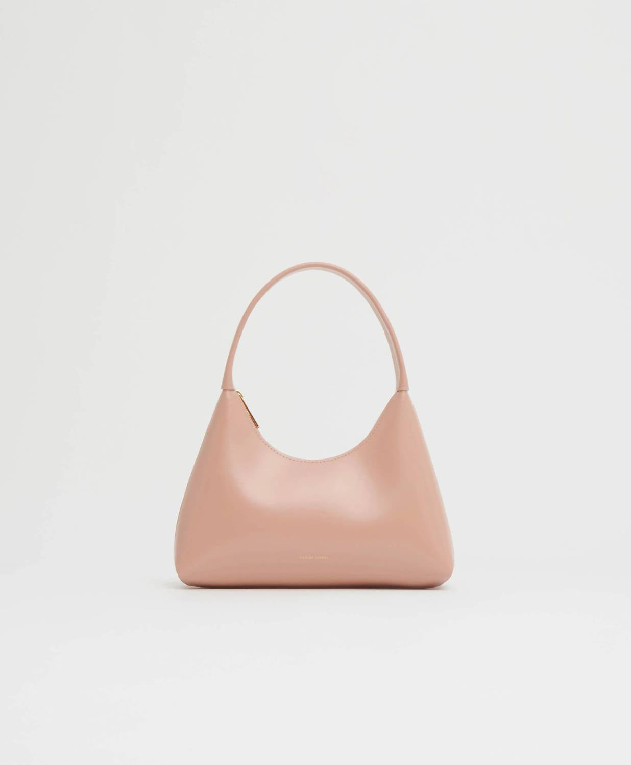 Now trending: Mini bags! The Mini Candy Bag by Mansur Gavriel is a stylish accessory in Cipria, featuring a chic graphic silhouette with a versatile circular strap for shoulder or hand carry. Made in Italy, it showcases a 100% Italian tumbled calfskin exterior, renowned for its soft handfeel and grained texture, paired with a 100% Italian calf suede lining for added luxury. The bag is equipped with a zip-top closure and measures 7.08 inches in width at the top, 9.5 inches at the base, with a height of 4.7 inches, and a depth ranging from 2.2 inches at the bottom to 1.4 inches at the top, with a handle drop of 6.7 inches. To maintain its elegance, treat it with a leather conditioner and store it properly in its dust bag when not in use.