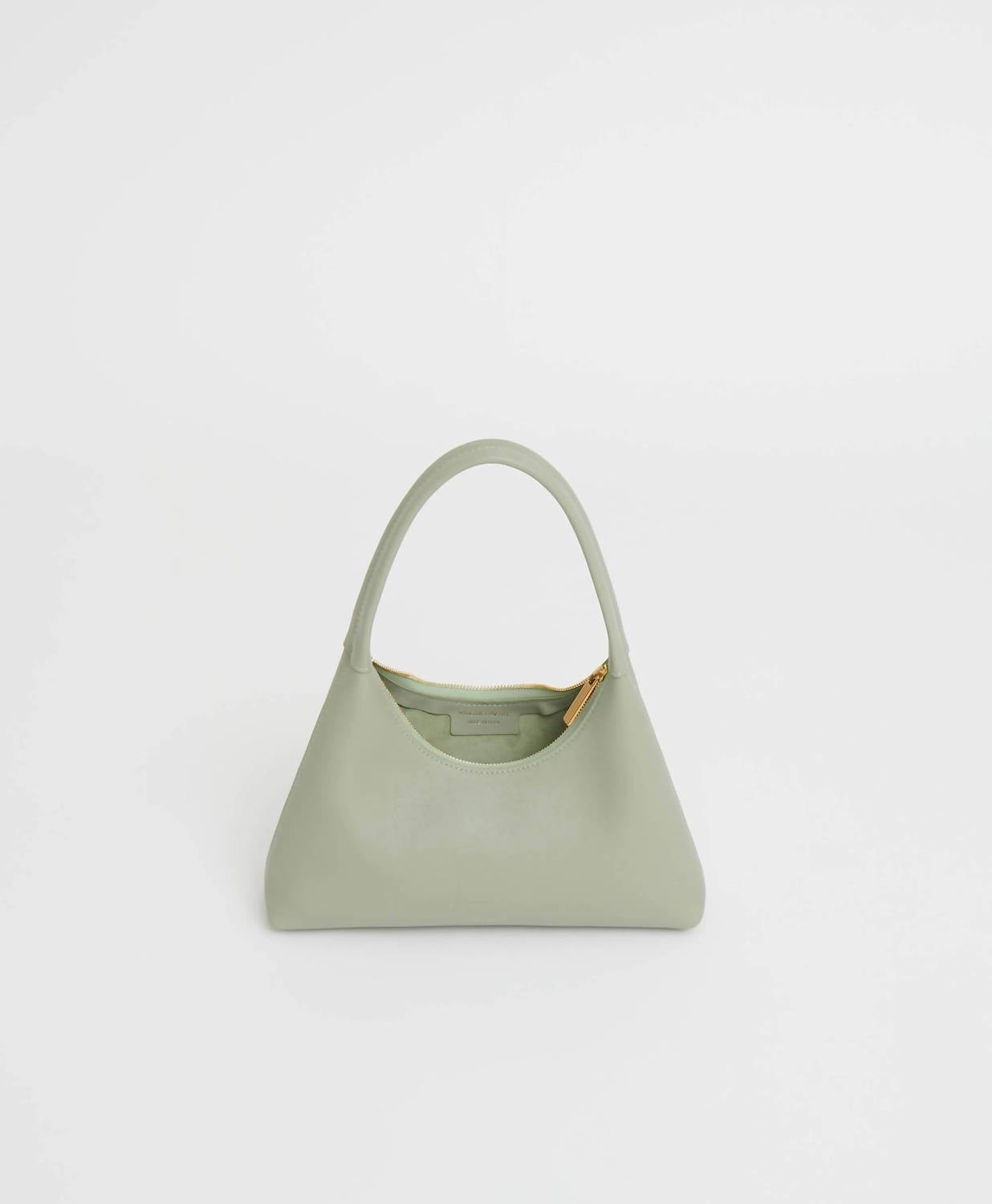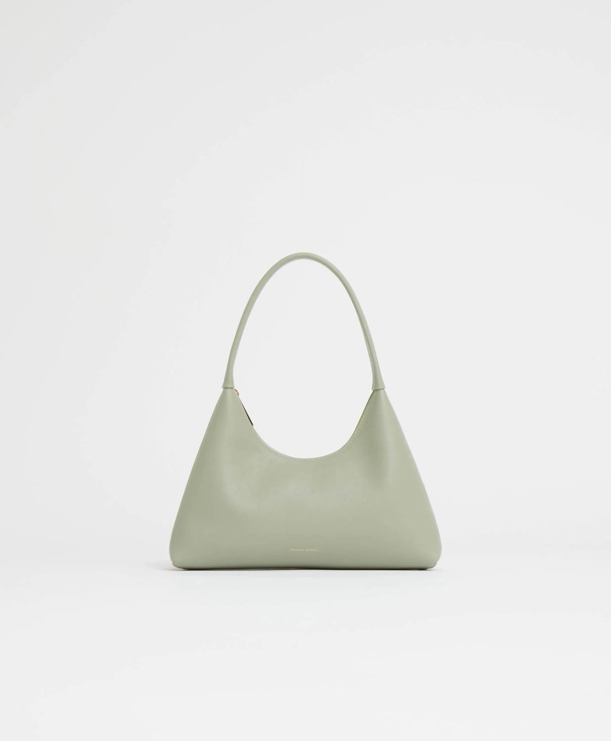 This little number holds all of the important things... lipstick, mints, credit card. Discover the Women's Mini Candy Bag by Mansur Gavriel, a chic accessory in a delightful sage hue. Fashioned from 100% Italian soft calf leather with a suede lining, this bag showcases a graphic silhouette enhanced by a circular strap for versatile wear. Crafted in Italy, it features a zip top closure and displays meticulous attention to detail with dimensions: width at top 7.08 in, width at base 9.5 in, height 4.7 in, depth at bottom 2.2 in, and depth at top 1.4 in, with a handle drop of 6.7 in. To preserve its elegance, treat it with a leather conditioner and store it in its dust bag when not in use.