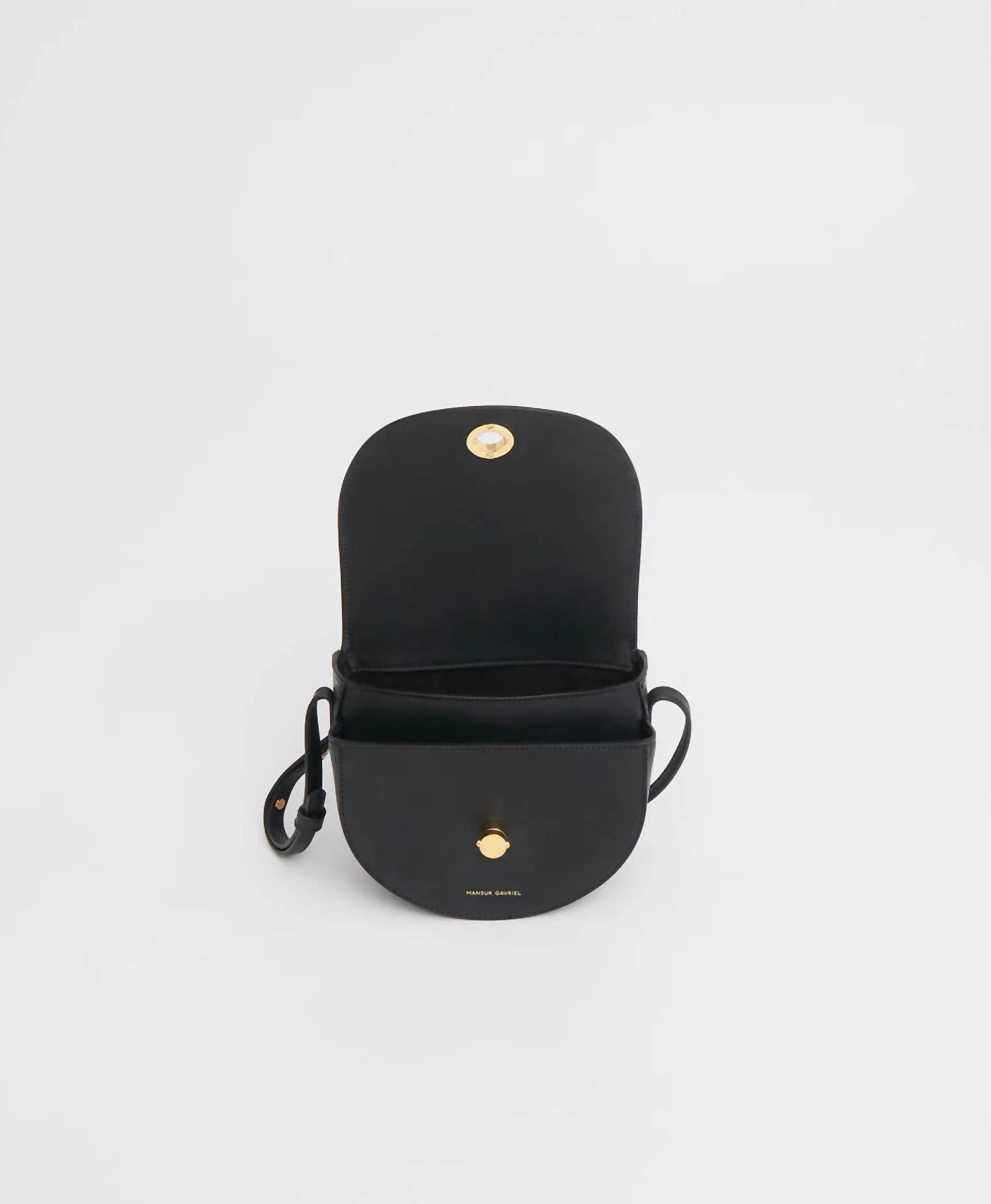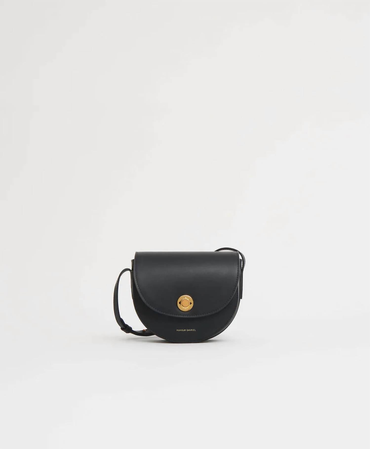 This little number holds all of the important things... lipstick, mints, credit card. The Women's Mini Saddle Bag by Mansur Gavriel exudes understated elegance with its structured silhouette and dual mini compartments, perfect for stowing your essentials. Crafted in Italy, this compact crossbody features a luxurious composition of 100% Italian Vegetable Tanned Leather with a soft 100% Italian Calf Suede Leather lining. Ideal for a touch of sophistication, its adjustable strap promises a comfortable fit with a maximum drop of 19 inches and a minimum of 16 inches. Dimensions are neatly compact at Width: 6.6 inches, Height: 5.5 inches, and Depth: 6.6 inches.