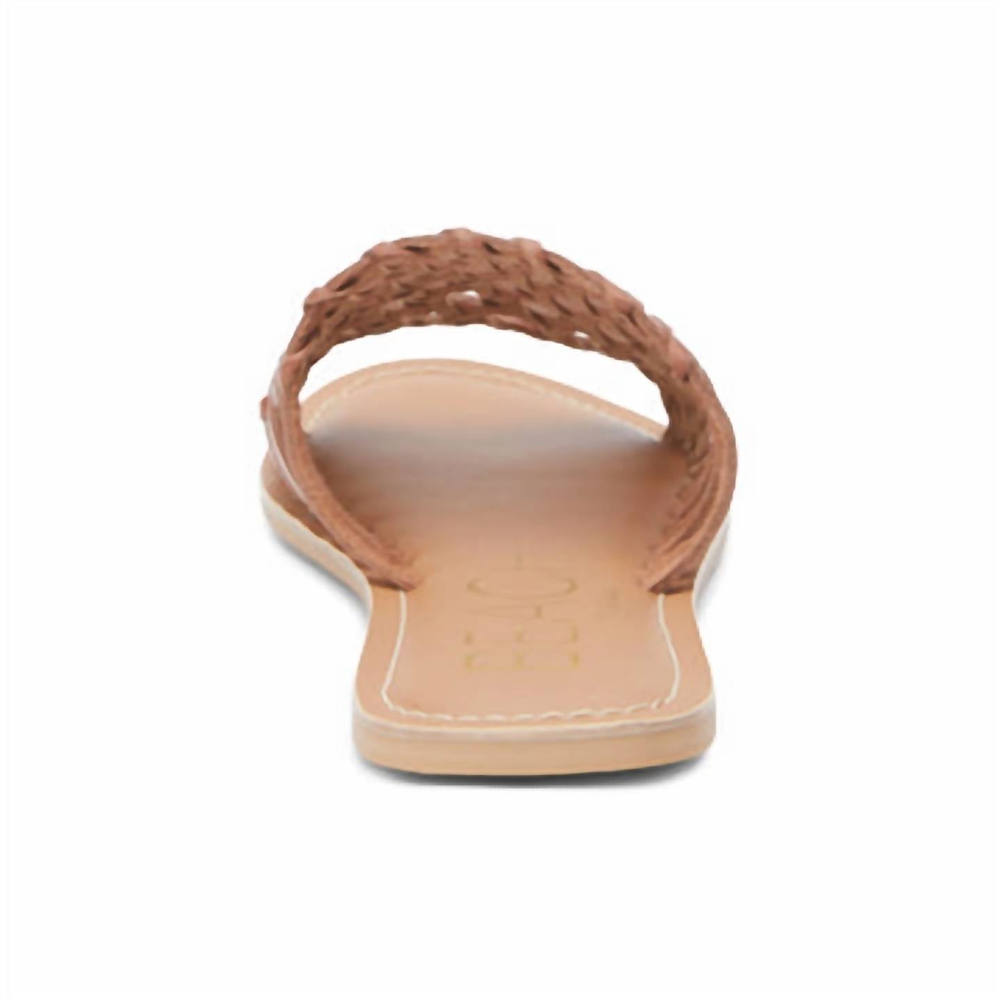 A preppy yet feminine take on the classic loafer. Step into effortless style with the Women's Aruba Sandal by Matisse, the ideal vacation companion in tan. This slip-on sandal features a beautifully woven leather upper, paired with a durable manmade outsole and a padded insole for ultimate comfort. Perfect for summer, the flats are designed with a round toe and flat heel, making them a stylish monochrome choice for any warm-weather occasion. Crafted to medium width for women in the adult age group, these sandals are a charming blend of fashion and function.
