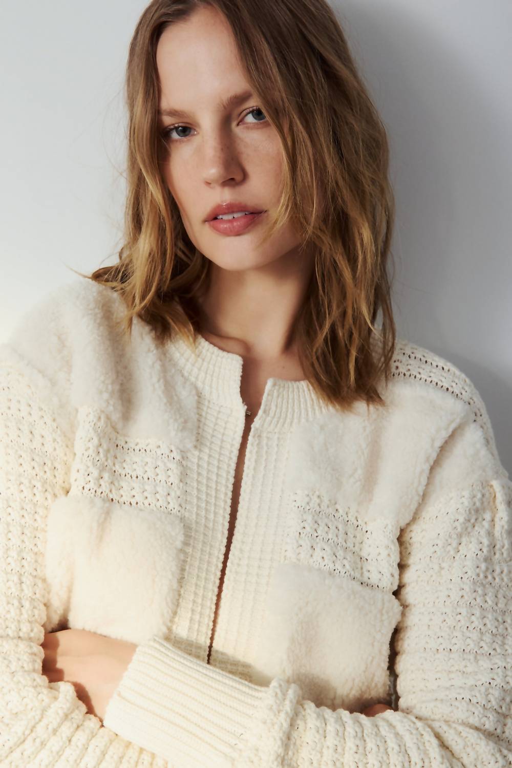 This cardigan will be a sweater-rotation favorite. Elevate your fall wardrobe with the Romeo Crochet Cardigan by MELISSA NEPTON, designed in a sophisticated cream hue with a textured pattern. This women's cardigan features long sleeves and a classic crewneck, adding a refined touch to any holiday party outfit. Crafted from a luxurious cotton knit with faux fur details, it offers both warmth and style. Made in China and featuring a convenient hook and eye closure, it is easy to care for with a simple hand wash in cold water.