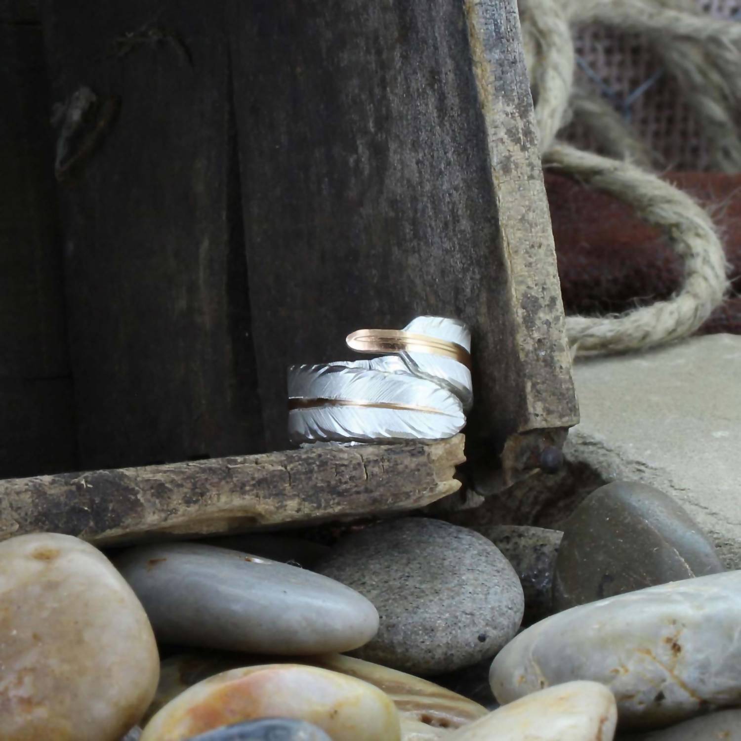 This ring will be your favorite go-to piece of the season. Introducing the Women's Filament Sterling Silver Feather Ring by Montana Silversmiths, a delicate piece that captures the intricate details of a real feather in a refined design. This ring features a sterling silver base with rhodium and rose gold plating, enhancing its elegant shine. The rose gold finish along the spine adds a sophisticated touch. Dimensions: 0.61" width, 0.06" height.