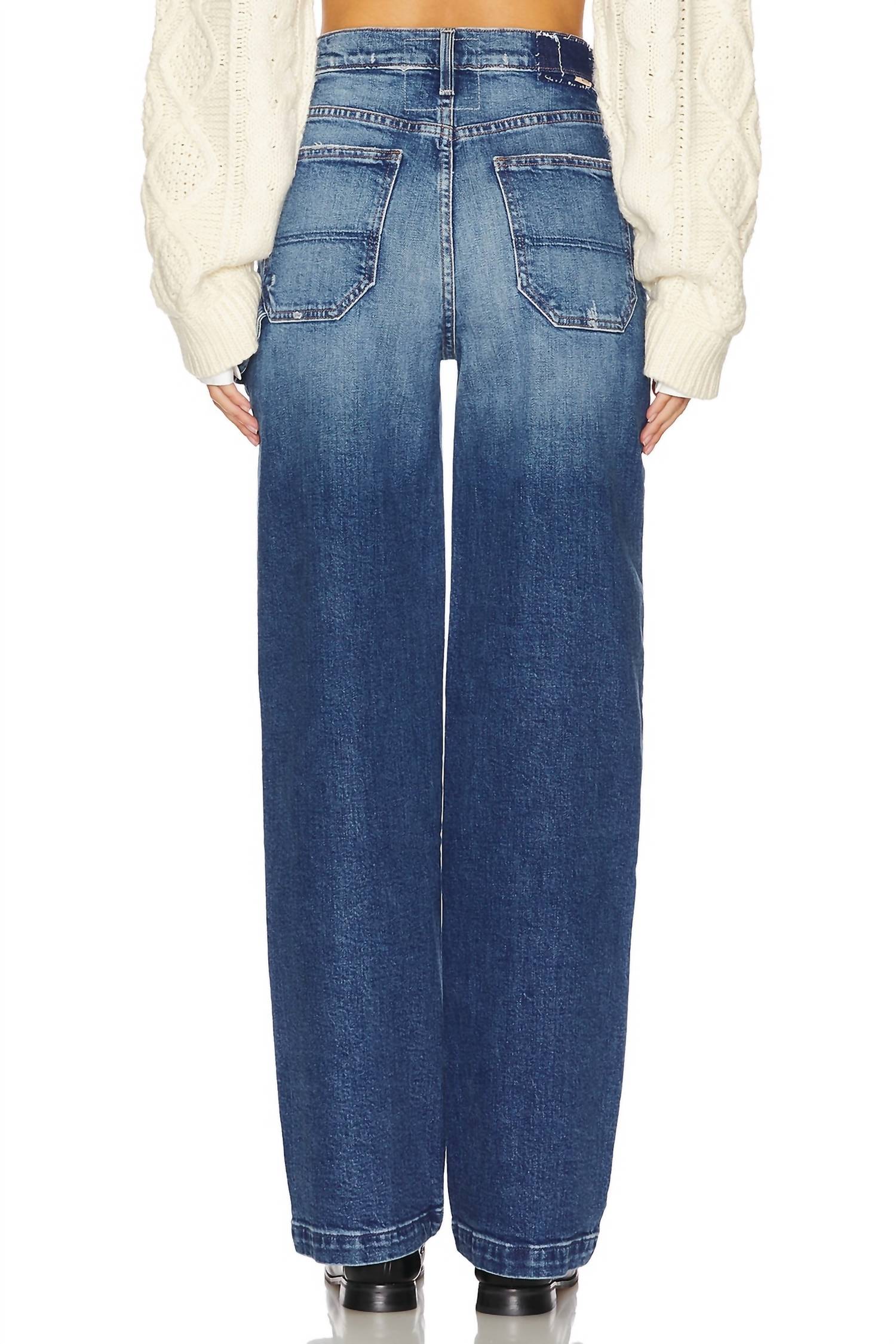 Pair these wide leg jeans with mules, slides or your favorite strappy sandals. Elevate your streetwear style with The Stud Finder Jeans by Mother, designed in a sophisticated dark blue. These women's jeans feature a textured pattern in a classic fit with a wide leg style, perfect for spring vacations. The jeans are equipped with pockets for added functionality and a zip closure for ease. Expertly crafted with meticulous attention, these jeans reflect a commitment to quality and trendsetting style.