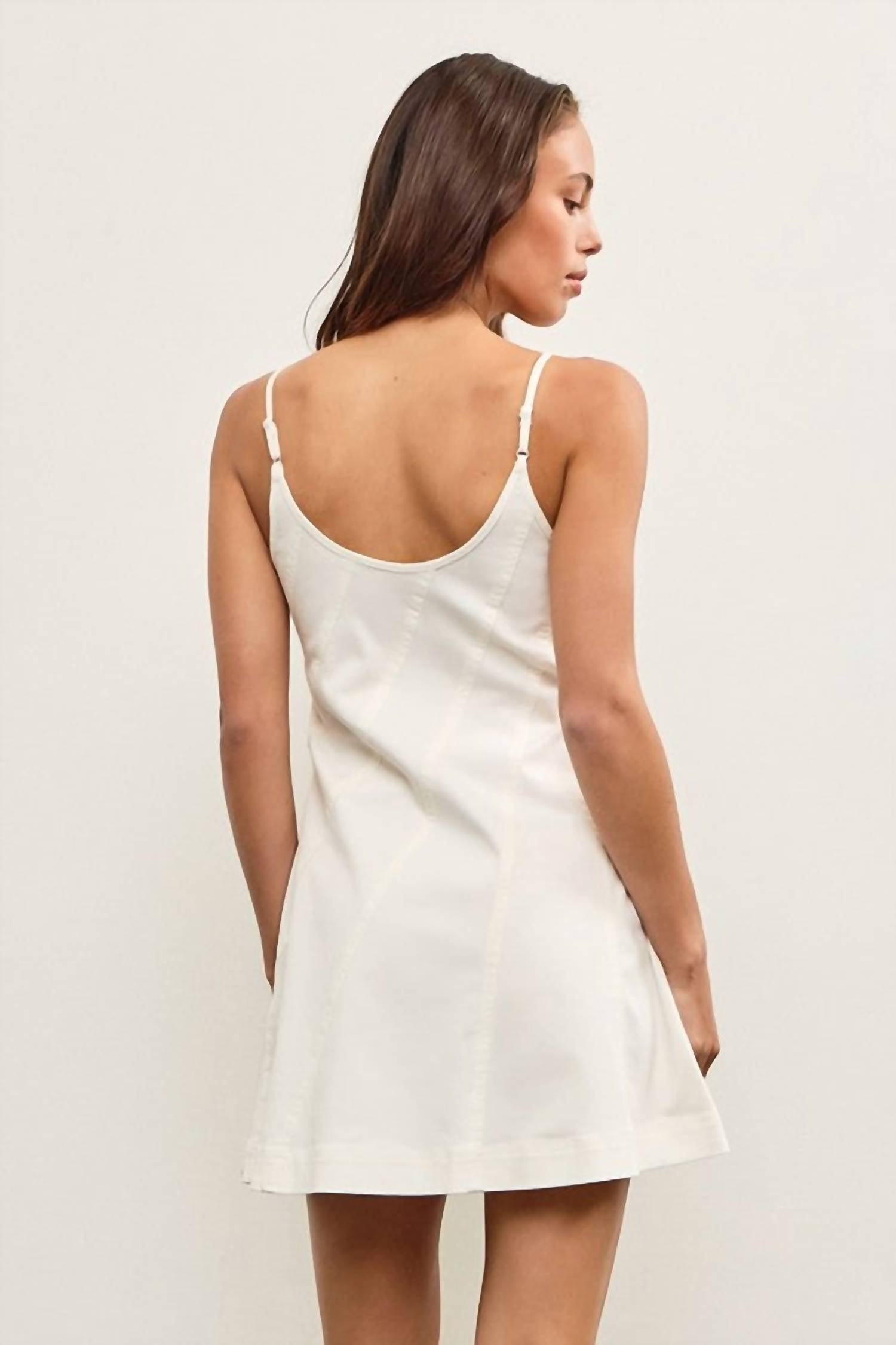 The kind of easy and flattering dress you'll be reaching for all season long. Discover the Paige Diagonal Seam Denim Mini Dress by Mustard Seed, a stylish choice for a holiday party. This white A-line dress features spaghetti straps and a scoop neckline in smooth, high-quality denim. Designed for effortless chic, it offers a comfortable pull-on closure. Care for it with a machine wash and tumble dry.