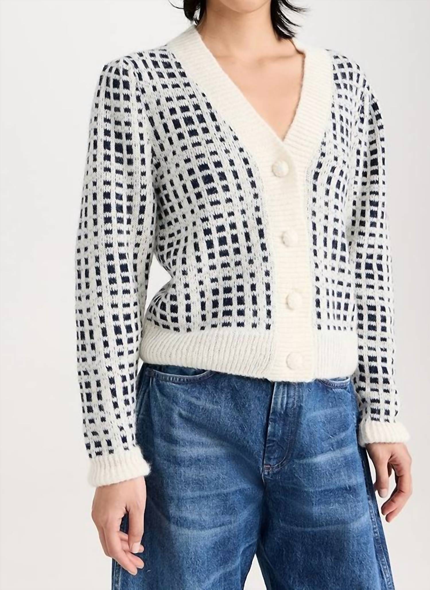 This cardigan will be a sweater-rotation favorite. The Inez Femme Cardigan by Nation LTD is a stylish nod to vintage fashion with its plaid print and V-neck design. Made of a mid-weight alpaca knit with a composition of 55% alpaca, 24% polyamide, and 21% merino wool, this cardigan promises comfort and warmth. Imported from Peru, it features long sleeves and a charming crocheted button placket. For care, simply dry clean this elegant piece in the color Prep School.
