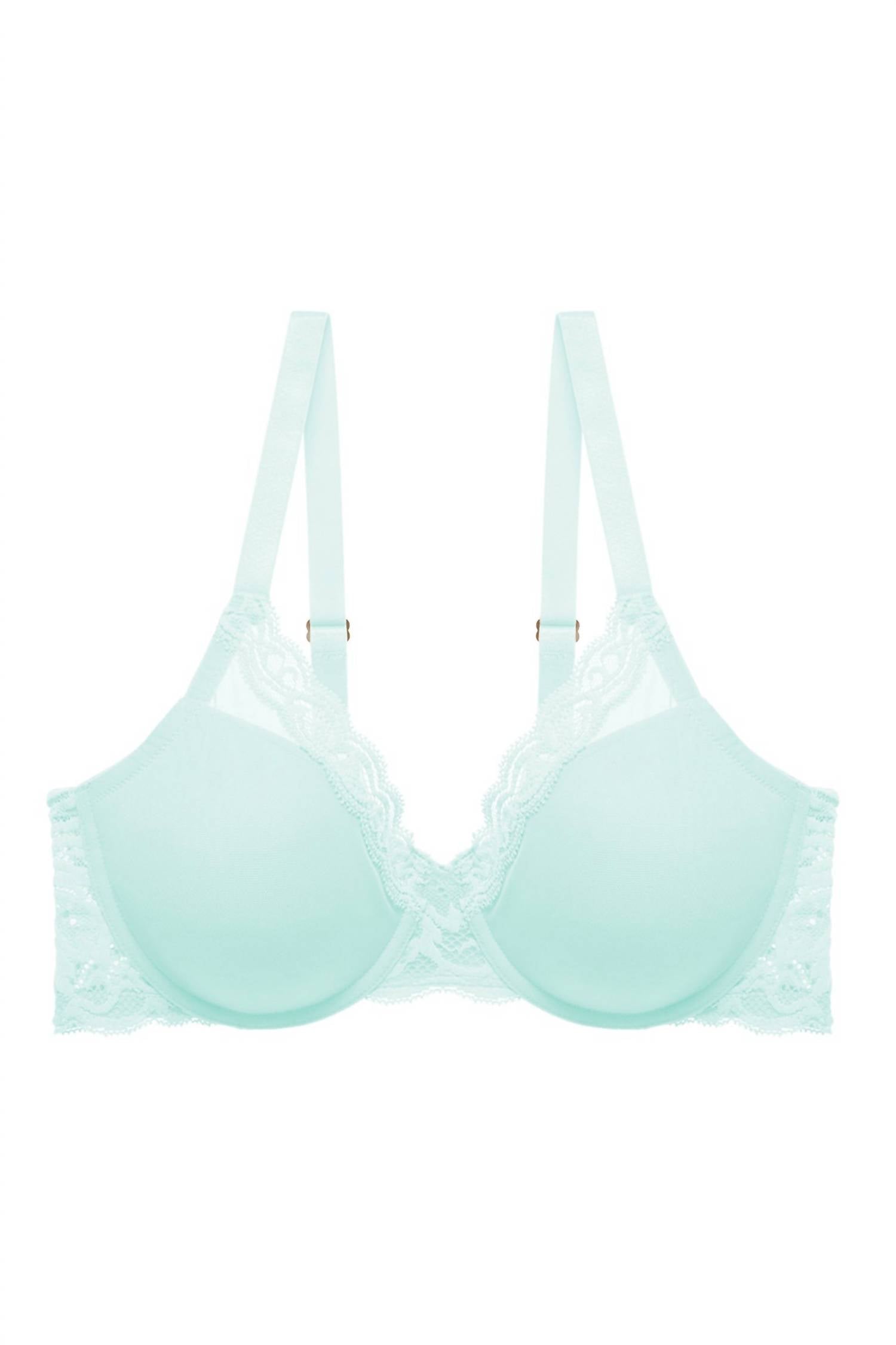Both pretty and functional. Need we say more? This plunge-silhouette bra is designed for an easy fit with added coverage and support, making it ideal for extended sizes ranging from 30–42 D–H. It features smooth stretch-foam cups overlaid with mesh for shaping that remains invisible under clothing, while a tall lace center gore with stabilizing support provides separation and containment. Wide stretch lace backs (lined with mesh in larger sizes) enhance comfort and control, and semi-rigid adjustable straps offer additional lift. Crafted with recycled lace content and certified under OEKO-TEX® Standard 100, it blends sustainability with everyday luxury. Composition: lace 93% nylon, 7% spandex; lace trim 95% nylon, 5% spandex; mesh 84% nylon, 16% Lycra® spandex; cup lining 100% polyester.