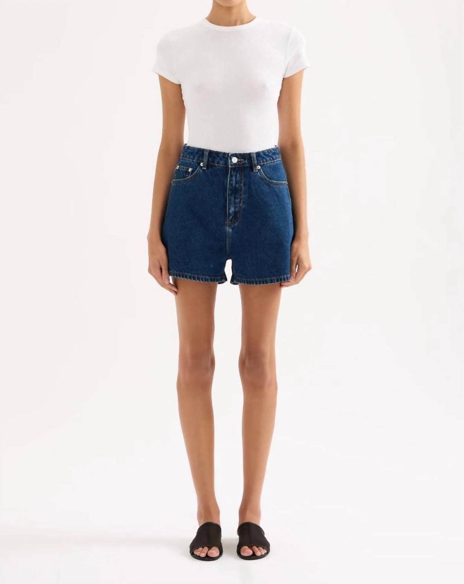 Not only cute but extremely comfortable. The jean shorts you will be reaching for all season long. The Nude Lucy Organic Denim Mom Short offers both style and sustainability in light wash denim. Crafted from 12 oz 100% organic cotton, this piece features a high rise, relaxed leg, and mini length with branded details like a shank button and rivets for added flair. Ideal for summer vacations, these shorts include functional belt loops and a Jacron patch. Care for this timeless piece with a cold machine wash, cool tumble dry, and a warm iron for seamless upkeep. Model is wearing size 26, and the design fits true to size, though sizing up offers a more relaxed fit.