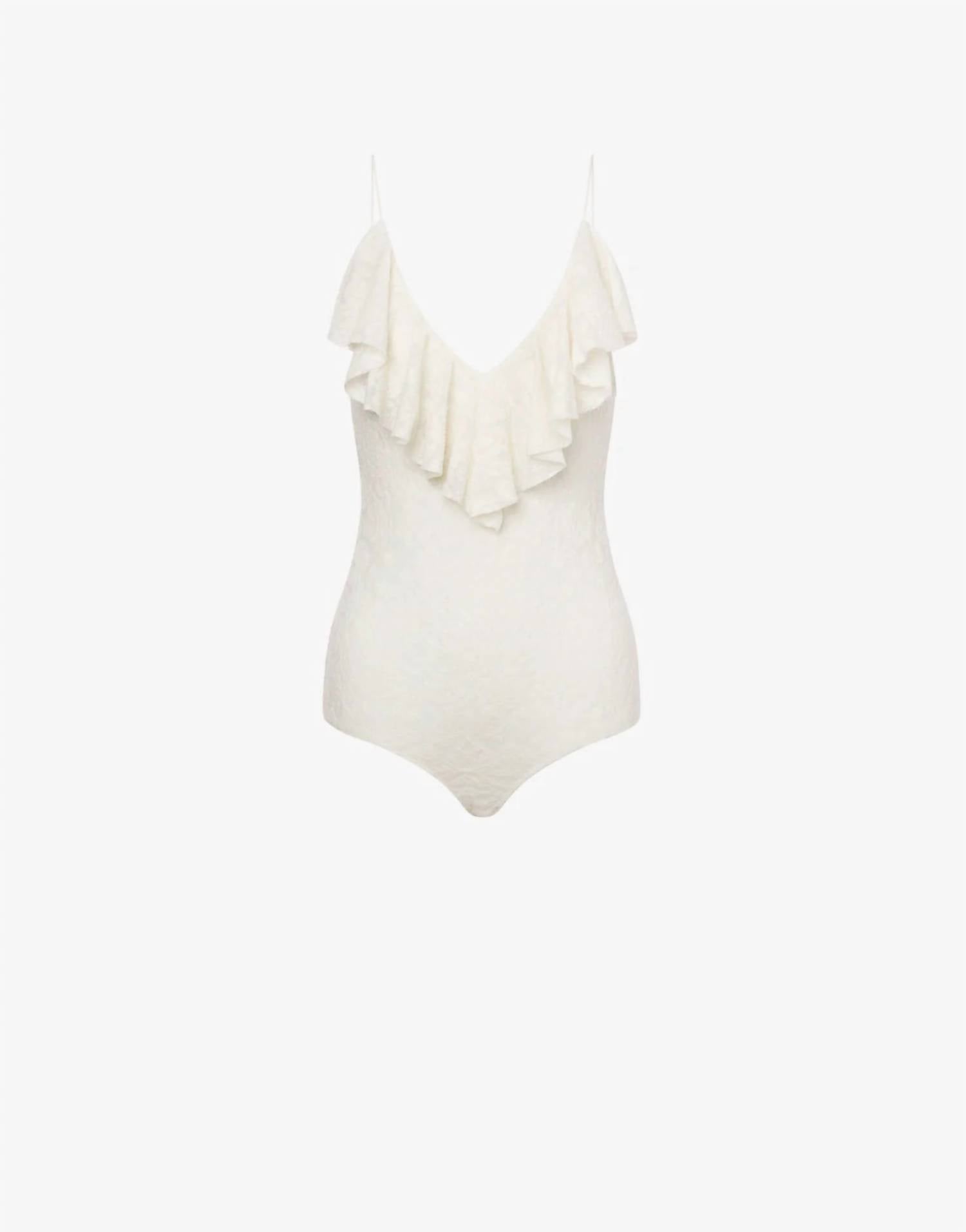 Who doesn't love a good bodysuit? Unveil your boho chic side with the Lace Sleeveless Bodysuit by Philosophy di Lorenzo Serafini, an ideal choice for music festivals. This bodycon fit piece in patterned white features delicate spaghetti straps and a stylish V-neck, offering a chic look all summer long. Closure comes in a convenient pull-on style.