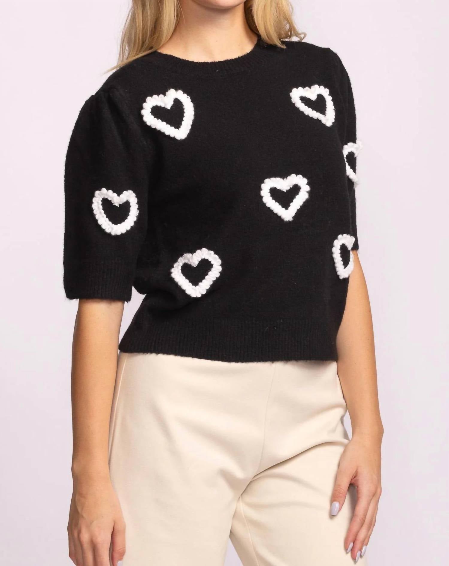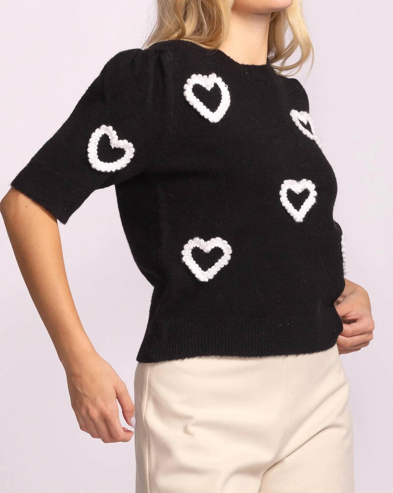 The ultimate go-to sweater, expertly crafted to provide the perfect combination of warmth and style. Its classic design and soft fabric make it a must-have addition to your wardrobe. The Hart Sweater is a cozy short-sleeve knit sweater crafted from super-soft yarn. Designed with contrast heart appliqués for a feminine touch, it pairs effortlessly with jeans or a skirt for a comfy-cute outfit you'll reach for again and again.