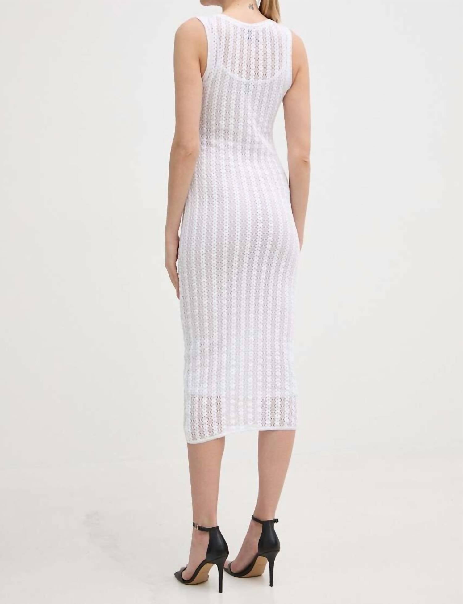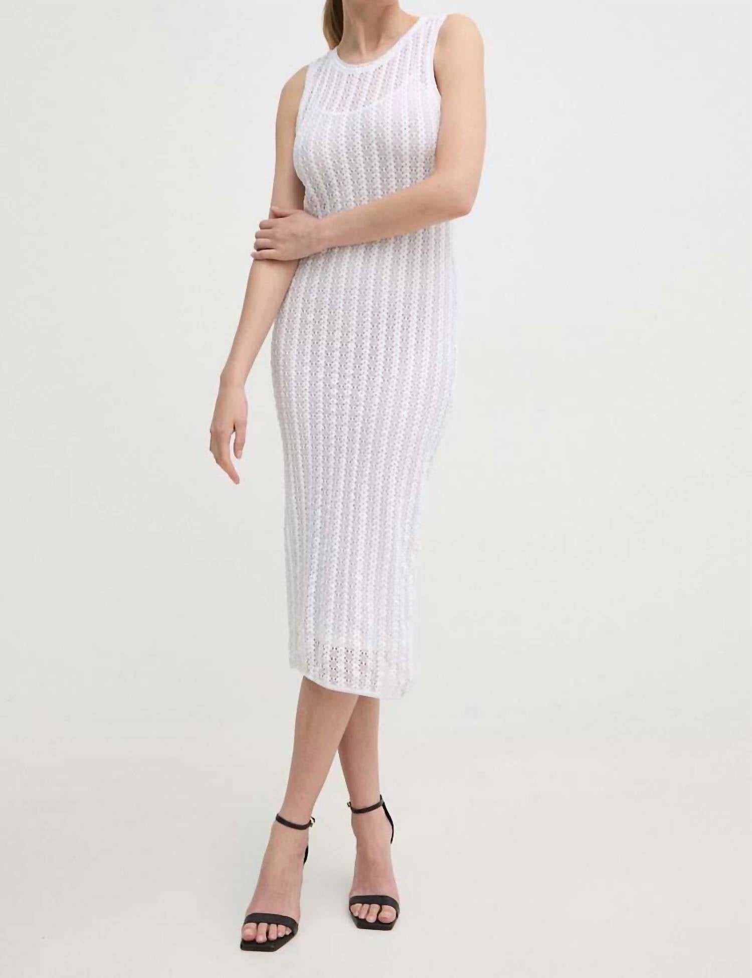 A midi dress so versatile, your options for wearing it are endless. Experience the elegance of the Alemonia Abito Dress by PINKO, a stunning sheath dress in refined white. This sleeveless midi dress is expertly crafted from a viscose blend, featuring a slim fit and decorative fringes for a chic, minimalist look. Designed with a classic round neckline and secure non-adjustable straps, it offers both style and comfort for your summer beach day occasions. Embrace the patterned, lightweight feel with its pull-on closure, accentuating your figure effortlessly.