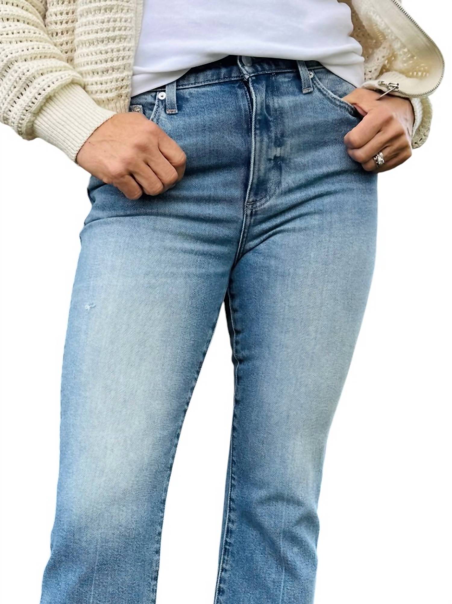 Just add boots! Elevate your denim collection with the Lennon Cropped Bootcut Jeans in Rhythm Vintage by PISTOLA. With a classic high-rise fit and a flattering bootcut leg, these jeans feature a cropped inseam of 27 inches, a rise of 11 inches, and a leg opening of 16.5 inches. Made from a comfortable cotton blend (95% Cotton, 4% Elasterell, 1% Spandex), this style offers a clean vintage wash complemented by copper button and rivets. Closure: Button closure. Care: Machine wash cold, line dry.
