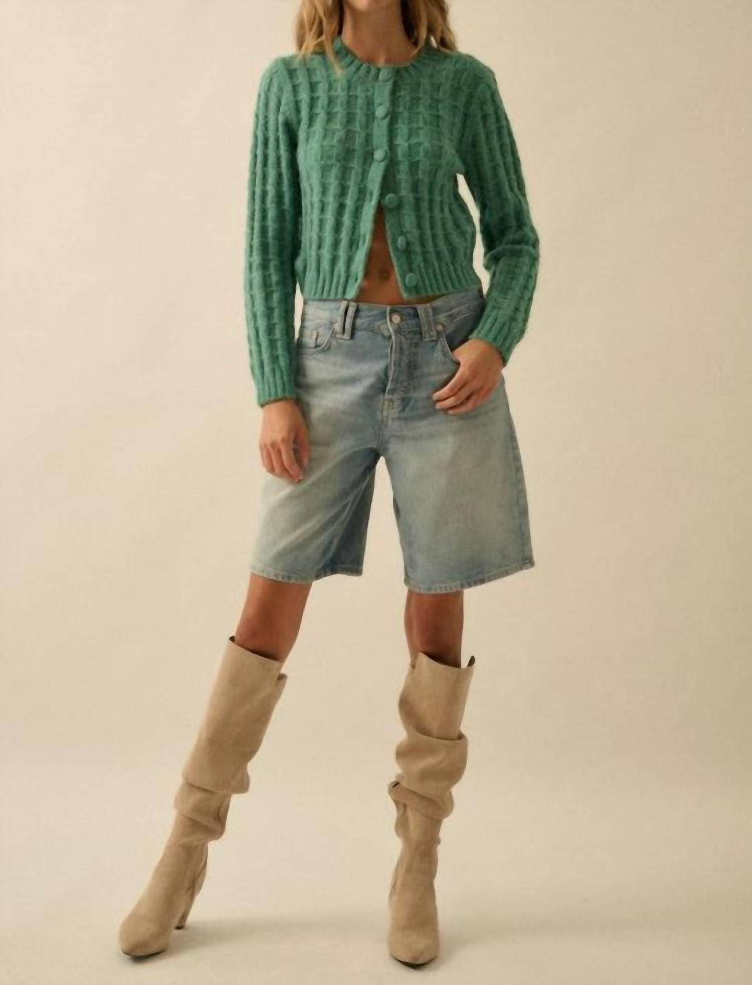 Throw this adorable cardigan over any cami or tank top. Elevate your fall wardrobe with the Cable Knit Button Up Cardigan by PROMESA, presented in a unique pine shade. This cardigan showcases long sleeves and a round neckline, ensuring a timeless and cozy fit. Crafted from a blend of 50% Nylon, 25% Acrylic, and 25% Polyester, it features a cable-knit texture alongside ribbed cuffs and hem for added detail. Closure is facilitated by fabric buttons, and it is best maintained through hand washing and laying flat to dry. Perfect for a minimalist look, this cardigan is ideal for vacation settings.