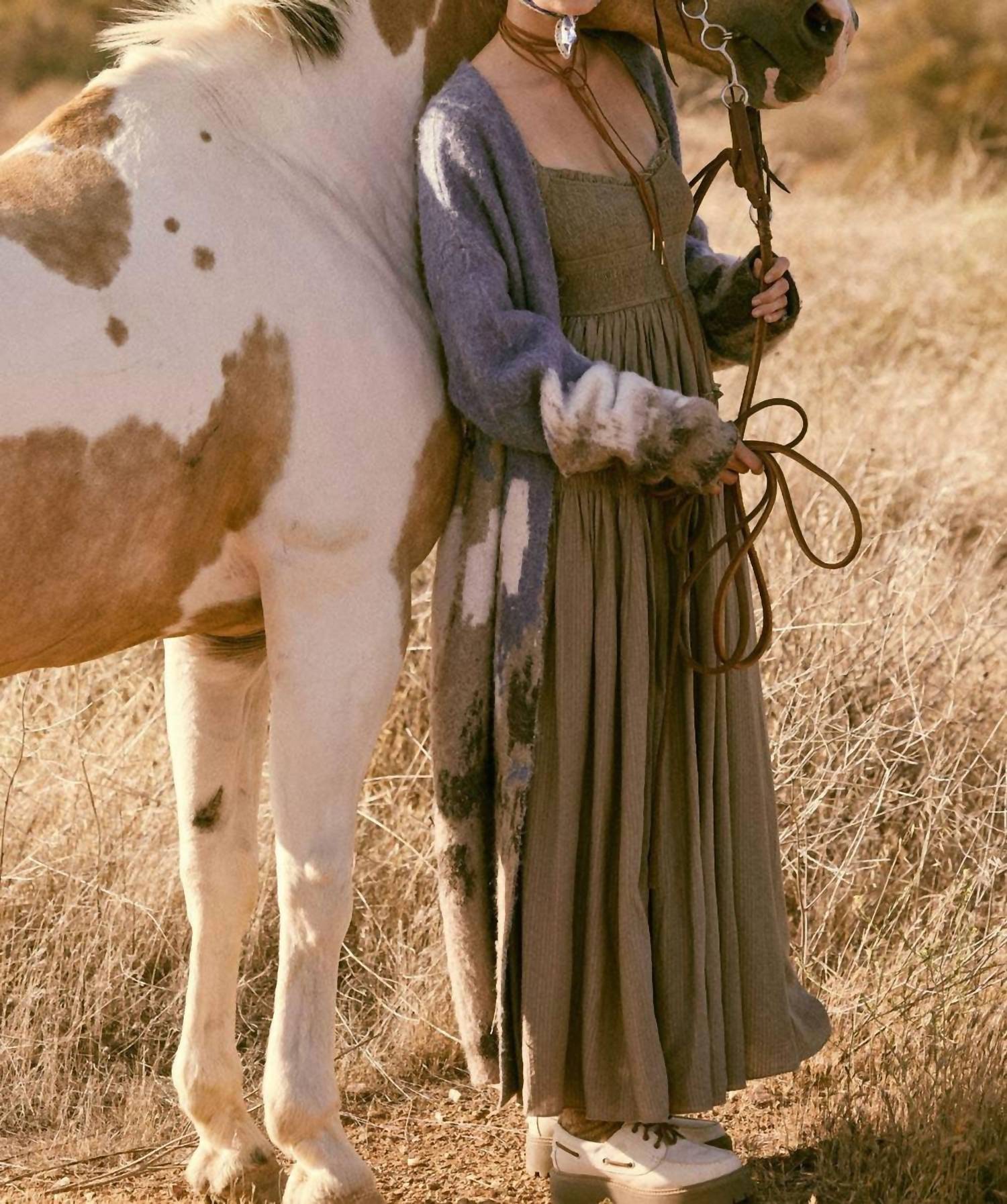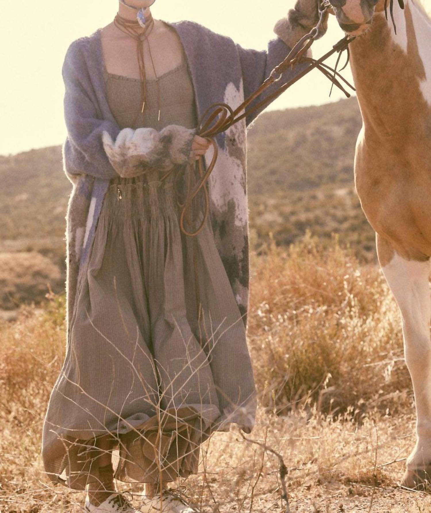This cardigan will be a sweater-rotation favorite. Experience the vintage charm of the Mountain Knit Duster Cardigan by PROMESA, designed for your relaxed vacation moments. With long sleeves and a retro blue graphic jacquard-knit featuring a mountain landscape design, it offers both style and warmth. The cardigan is crafted from a blend of 77% Acrylic, 20% Polyester, and 3% Spandex, reaching calf length for an elegant duster fit. Featuring a drop shoulder and side seam pockets, it requires machine washing to maintain its classic appearance. Model is wearing a size S (5'10" height, 32" bust, 24" waist, 34" hip).