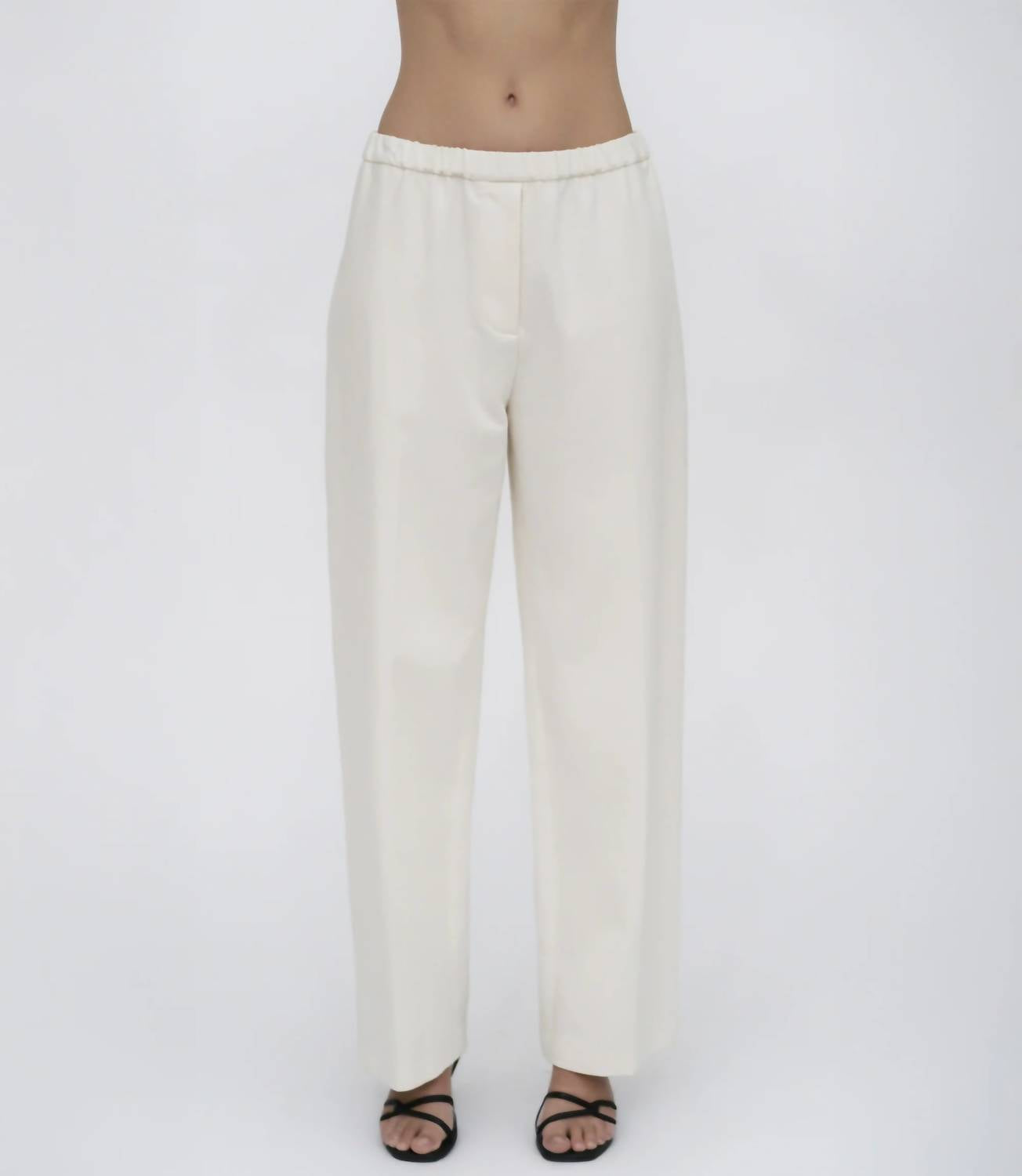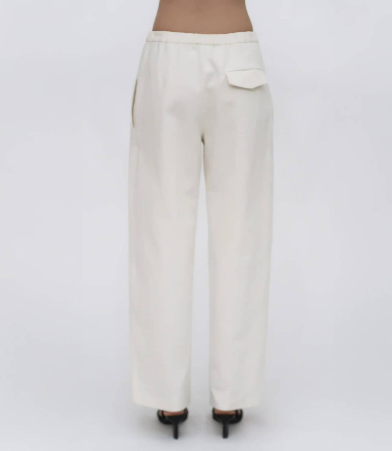 Introducing the Rosetta Getty Relaxed Pull-On Pant, a Pre-Fall 25 essential that blends tailored menswear details with a comfortable elasticized waist. Crafted from a breathable Cotton Linen Piqué fabric, these ivory pants feature a straight, wide-leg silhouette that drapes subtly, perfect for warmer weather. Made with 80% Cotton and 20% Linen, the design includes an elasticized waistband and a faux fly, with convenient pockets. With a pull-on closure, these pants are a versatile choice for transitional seasons and special occasions.