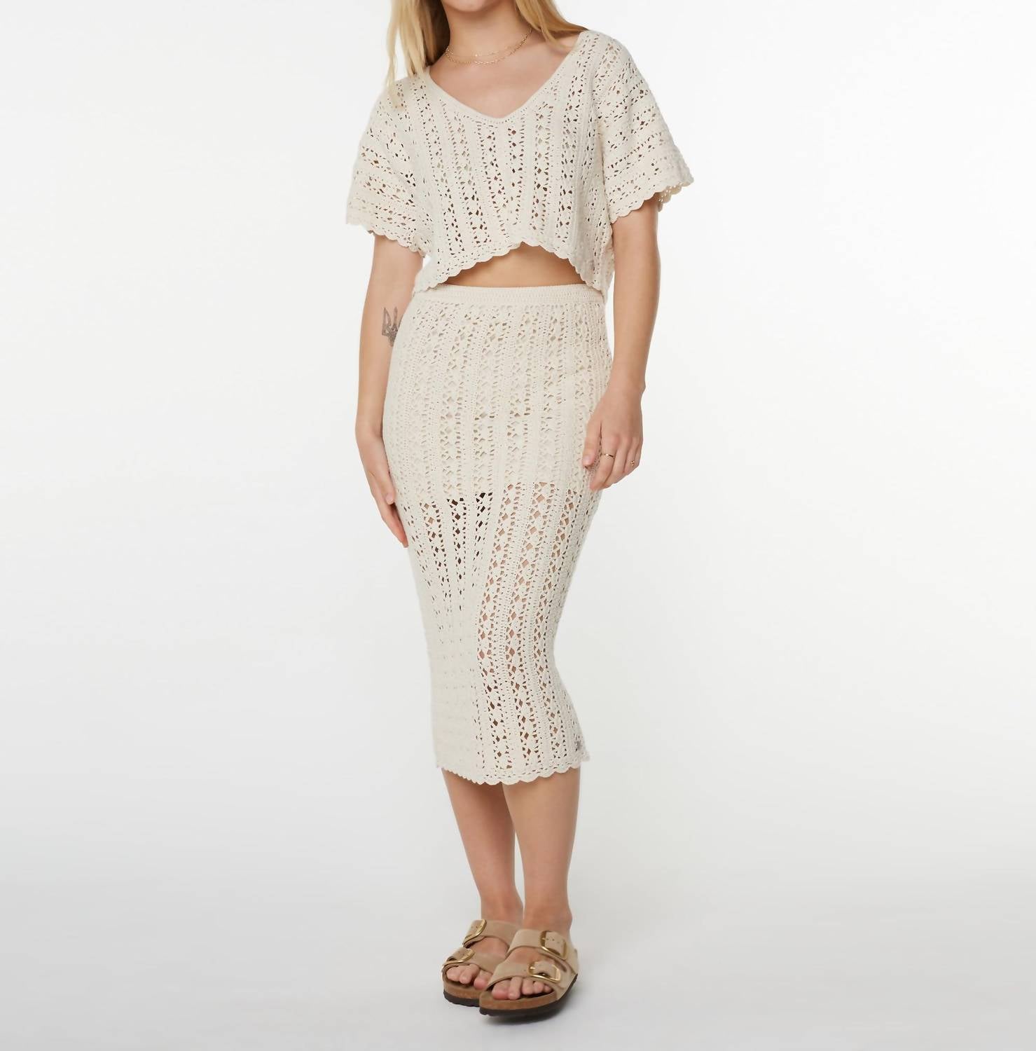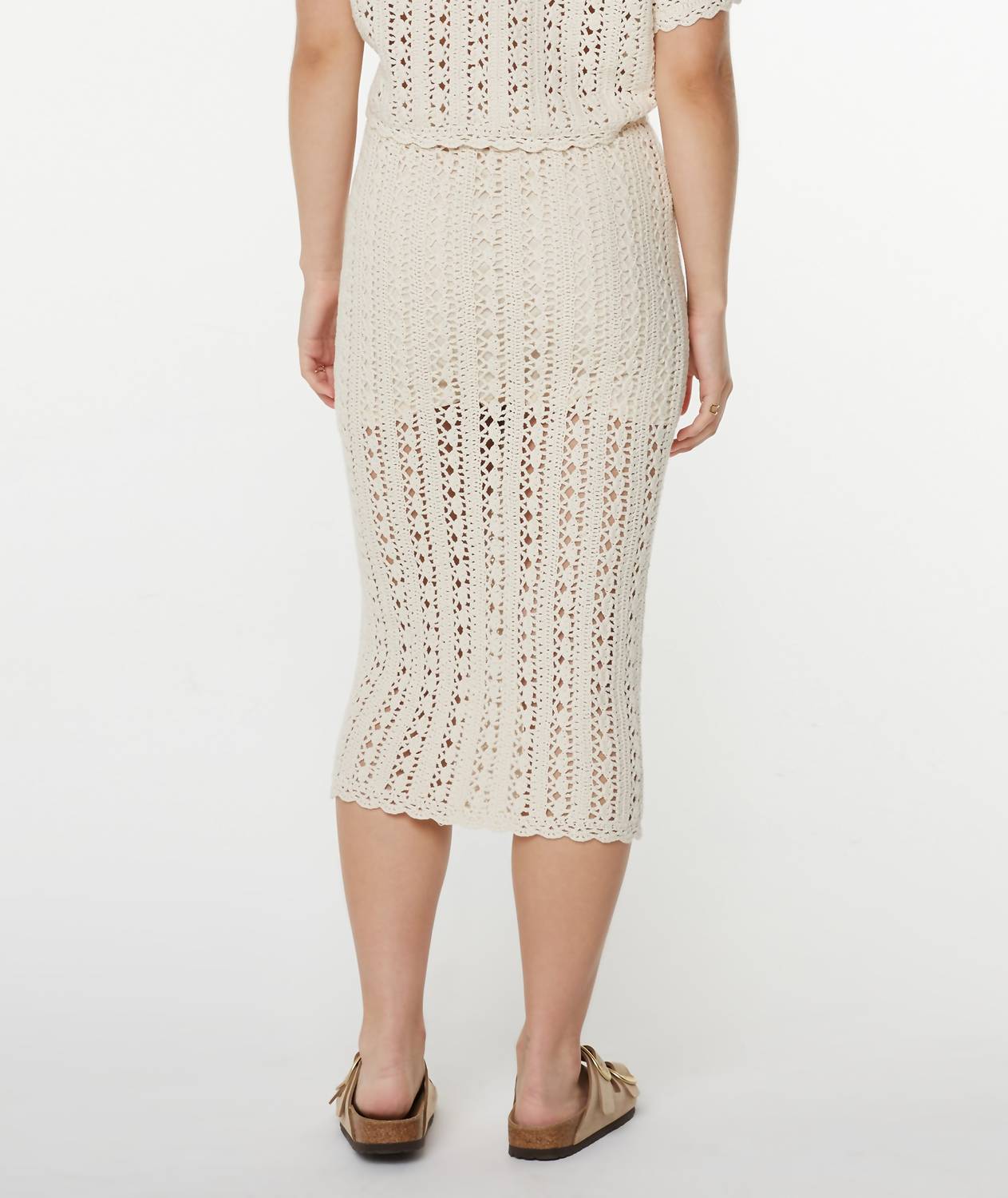 Tuck your favorite tee into this midi length skirt for an effortlessly cool look. Elevate your summer wardrobe with the Sea Swirl Crochet Skirt by ROXY in Parchment Solid. This women's midi skirt is crafted from cotton, featuring a textured design for a chic vacation look. It offers a pull-on closure for effortless wear. Care instructions include machine wash and tumble dry for easy maintenance.