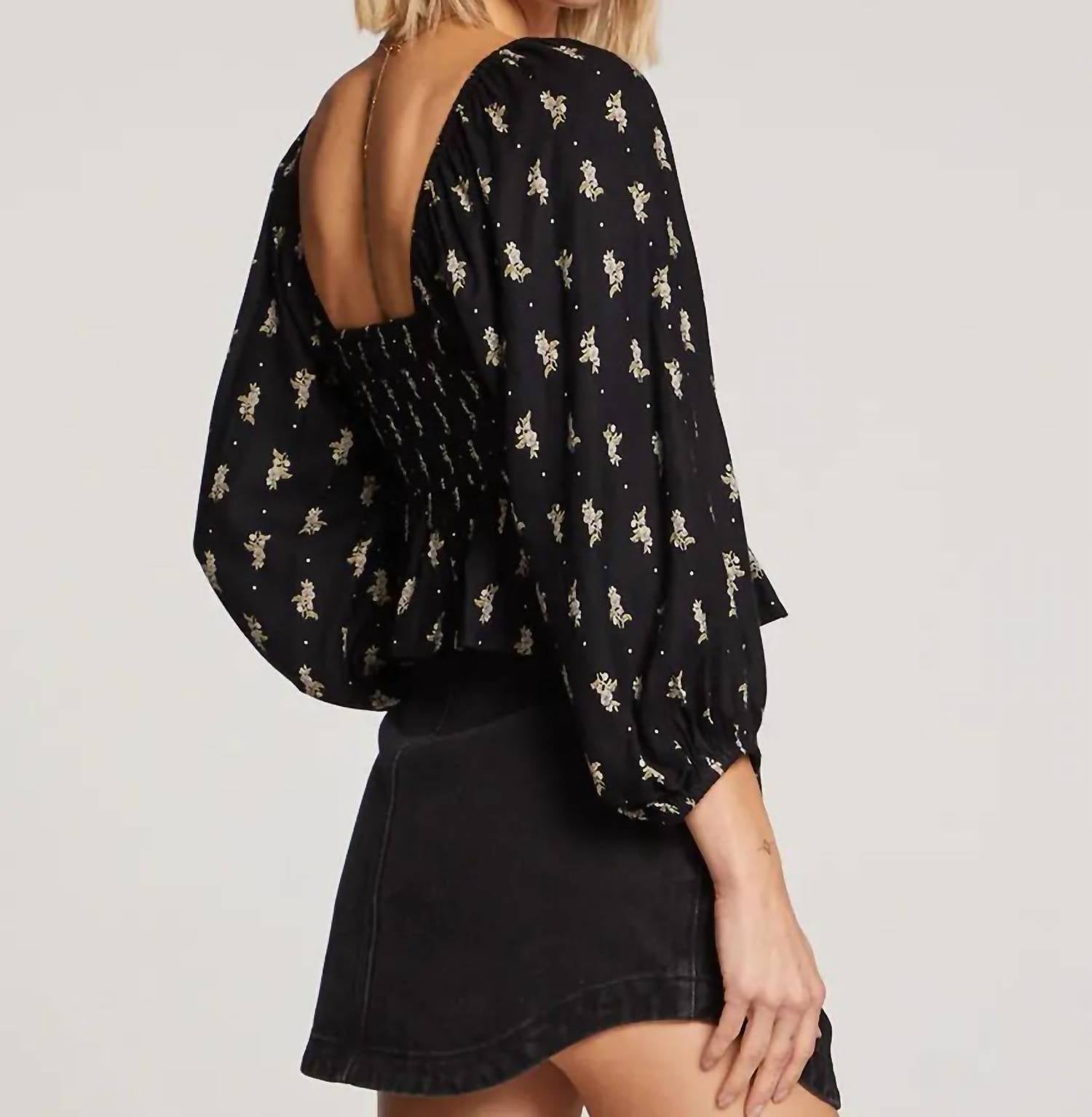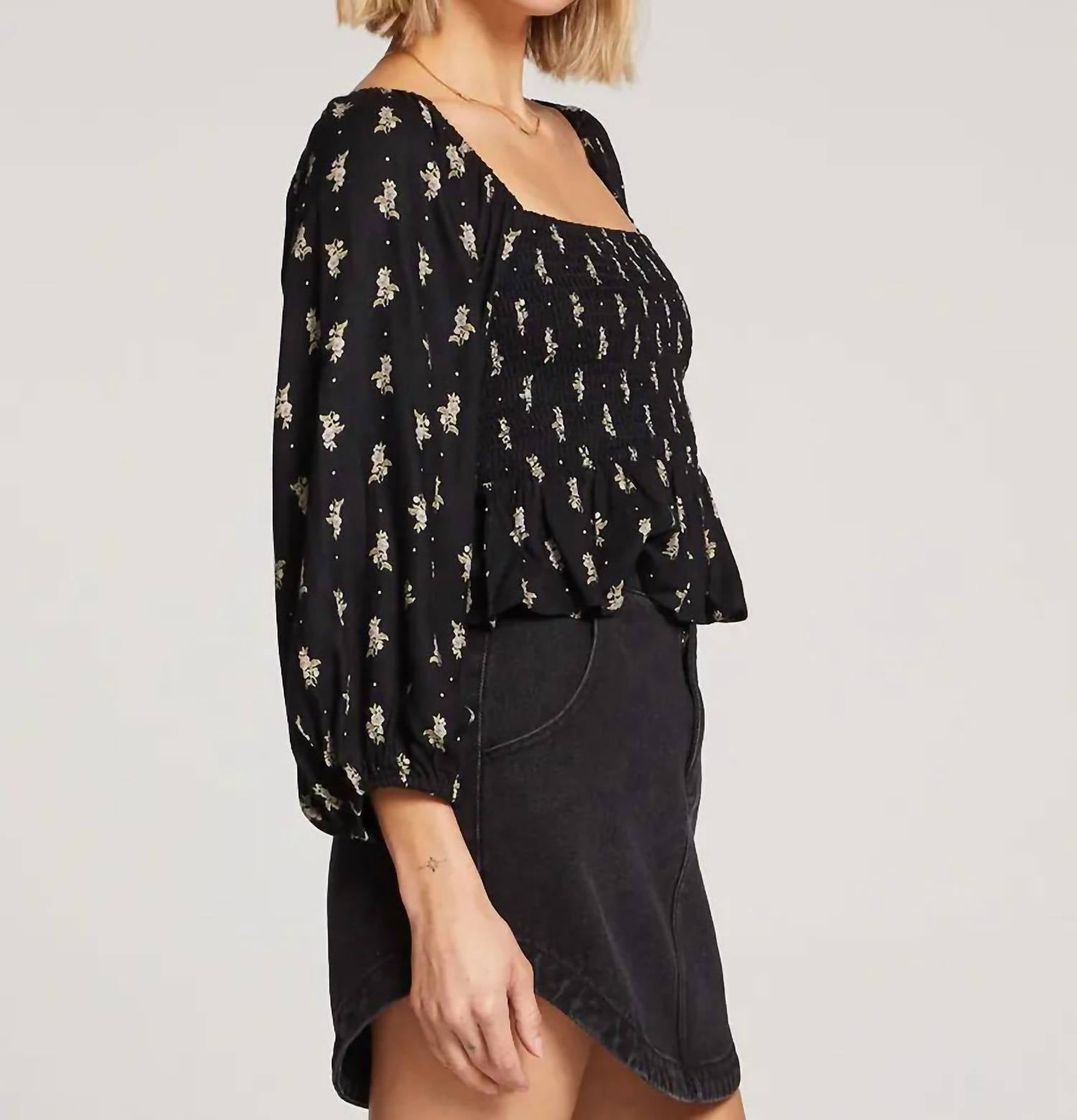 Pair this with your favorite jeans and slides for your next girls night out. Introducing the Lelani Top by Saltwater LUXE, a charming blouse perfect for any occasion. This women's blouse features three-quarter gigot sleeves and a squareneck, crafted from 100% Rayon for a soft, breathable fit. The black fabric with a petite floral motif adds a touch of elegance to any ensemble. This imported piece is designed with a convenient pull-on closure for ease and style.