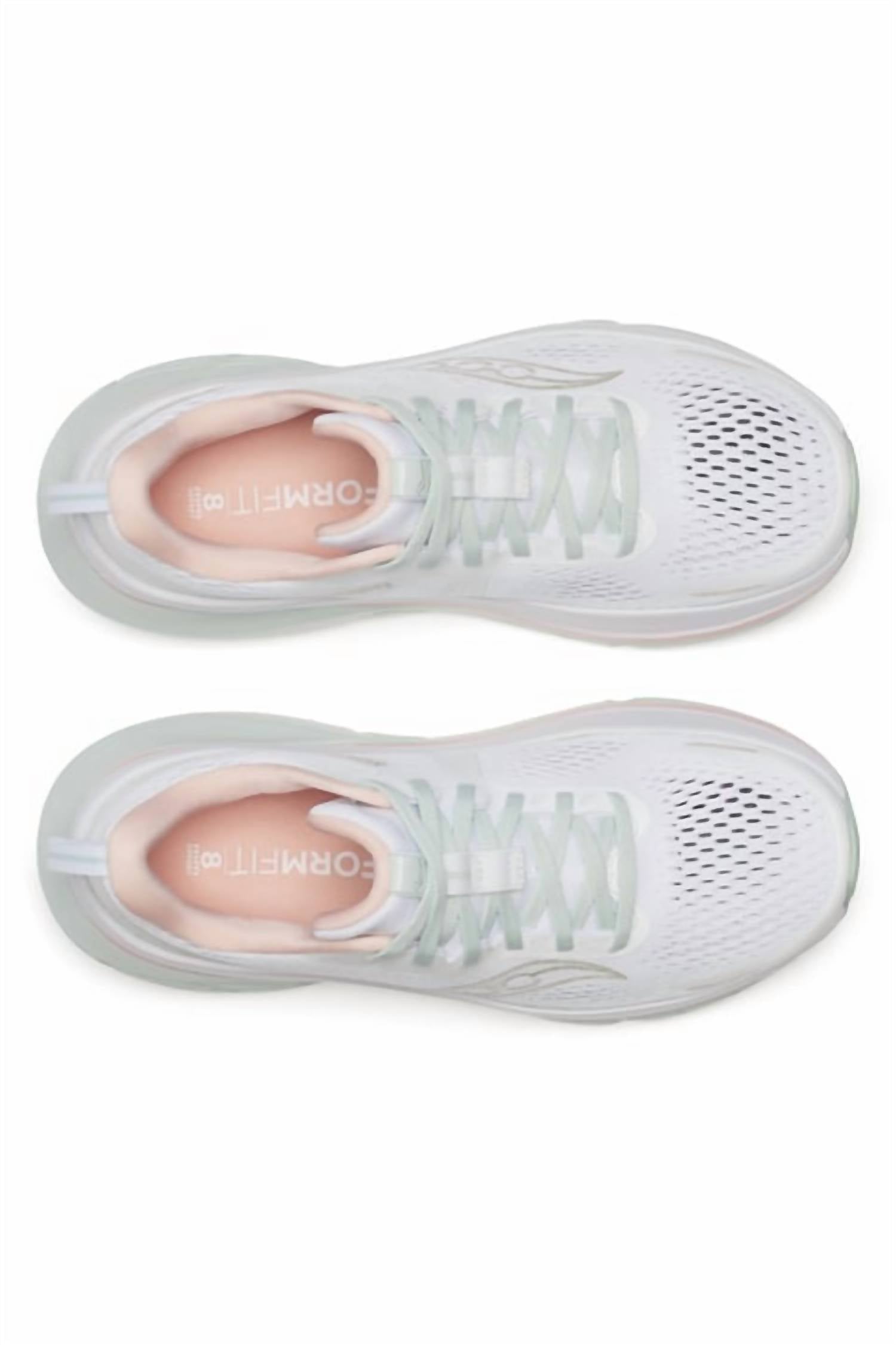 When fashion meets function. Experience unmatched support and cushioning with the Saucony Women's Guide 18 Running Shoes, designed in a fresh White and Pink colorway. Featuring a breathable mesh upper for flexibility and a secure fit, this anti-pronation shoe is made for daily road runs and intense training sessions. The innovative PWRRUN foam offers soft yet responsive cushioning, while the XT-900 carbon rubber outsole ensures durability and traction in high-wear areas. With Center Path technology and raised sidewalls, these shoes provide a stable and balanced experience, perfect for keeping up with your active lifestyle.