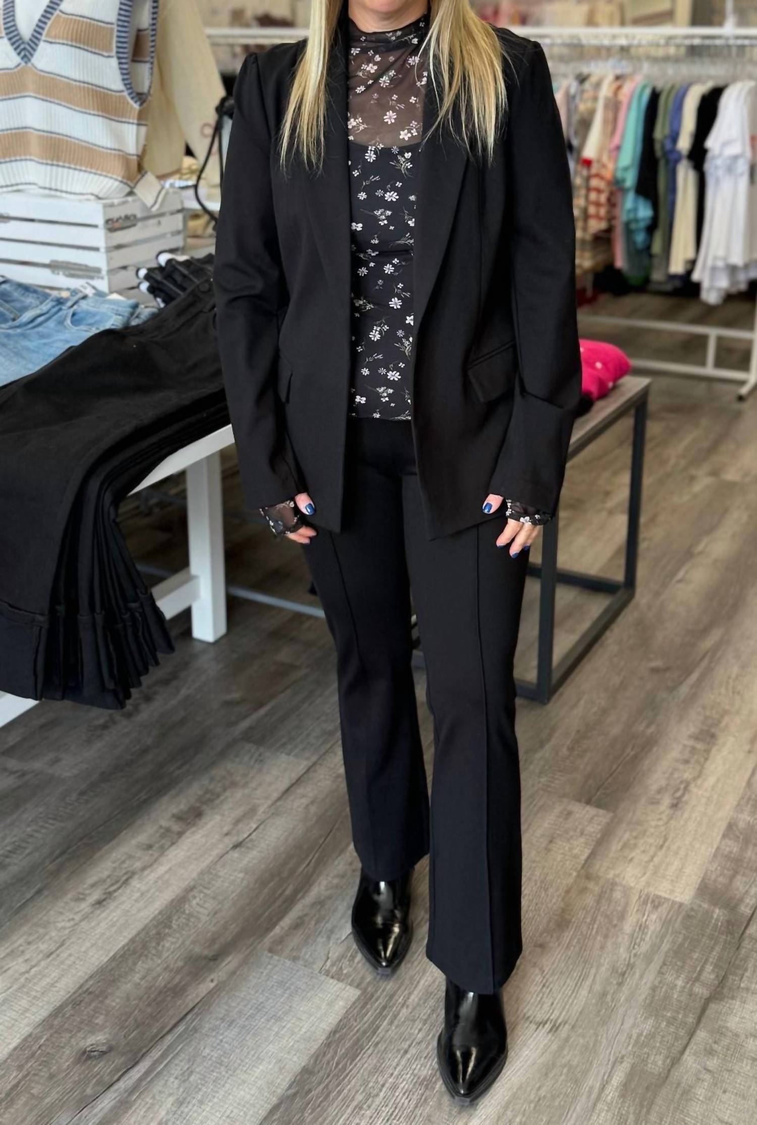 Tailored to perfection, this blazer will be your go-to jacket for years to come. Step into sophistication with the Modal Blazer Jacket by SKIES ARE BLUE, in an elegant solid black hue perfect for workwear or a dinner party. This women's blazer features long sleeves and a v-neckline, crafted from a blend of 70% polyester, 25% rayon, and 5% spandex to ensure a comfortable fit. With a sleek design including handy pockets, it promises both functionality and style for fall. Care is simple: hand wash and lay flat to dry for best results.