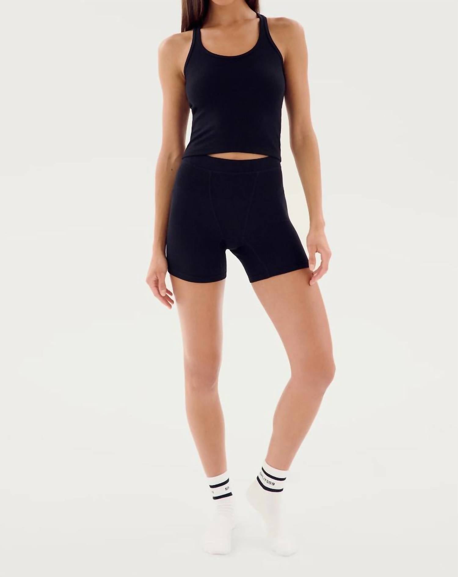 The perfect tank top for those warmer weather seasons. Introducing the Ashby Ribbed Tank Top by SPLITS59, a stylish and eco-friendly choice for your activewear collection. This sleeveless tank features a flattering scoop neck and is crafted from 95% Modal and 5% spandex, offering a super soft baby rib fabric with moisture-wicking and quick-dry technology. The pull-on design ensures a seamless fit, ideal for athleisure or fitness. Perfect for layering, this cropped tank comes in a versatile black, making it a summer essential.