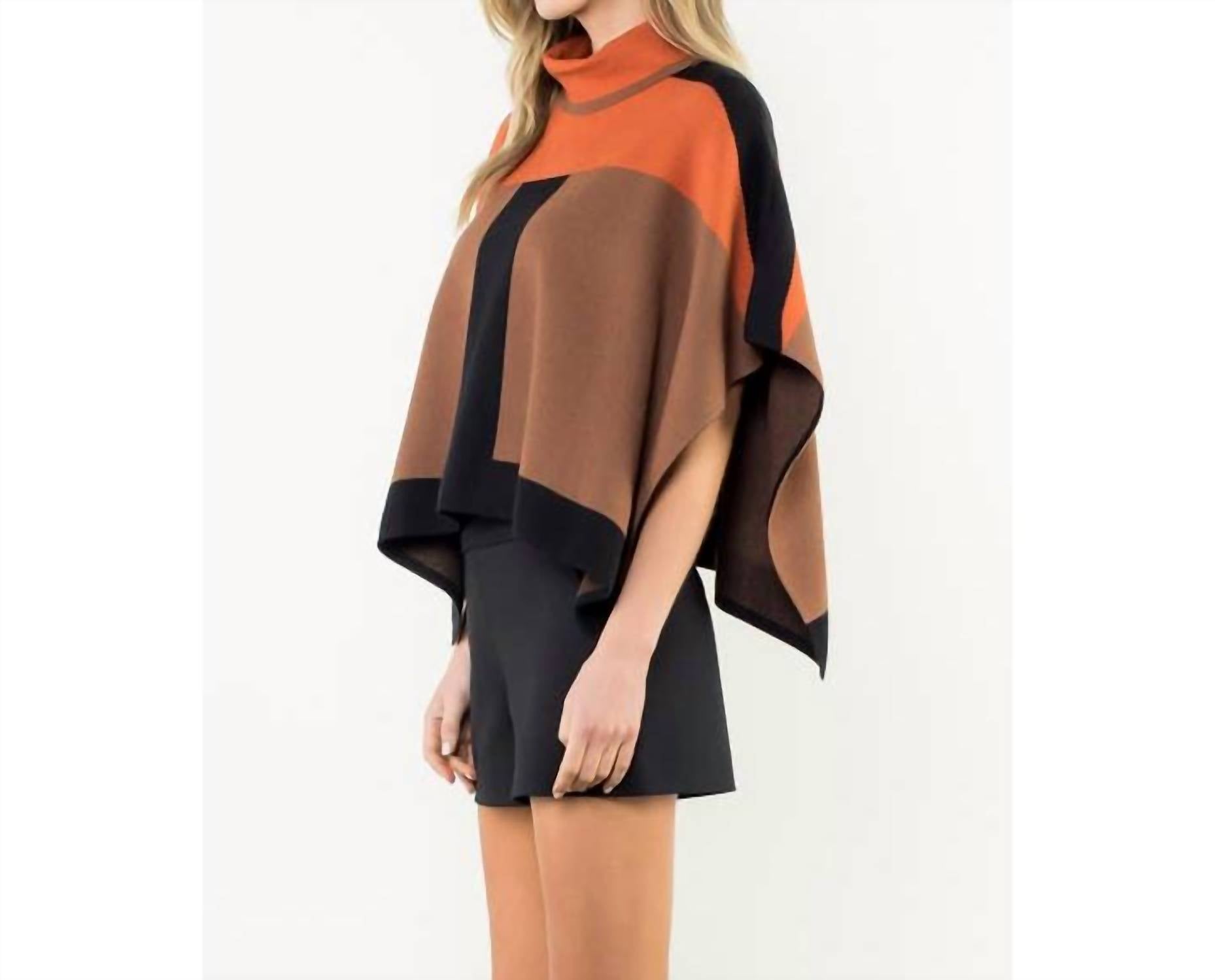 Wrap yourself in the Autumn Stroll Sweater Poncho by THML, a stylish piece perfect for fall's embrace. This sleeveless poncho is crafted from a cozy viscose blend (55% Viscose, 28% Polyester, 17% Nylon) in a bold color block of rust, cocoa, and black, and features a soft hooded neckline. Originating from an unspecified country, this pull-on style is designed for casual elegance and is ideal for layering. Easy to care for, simply machine wash and line dry to keep it looking fabulous.