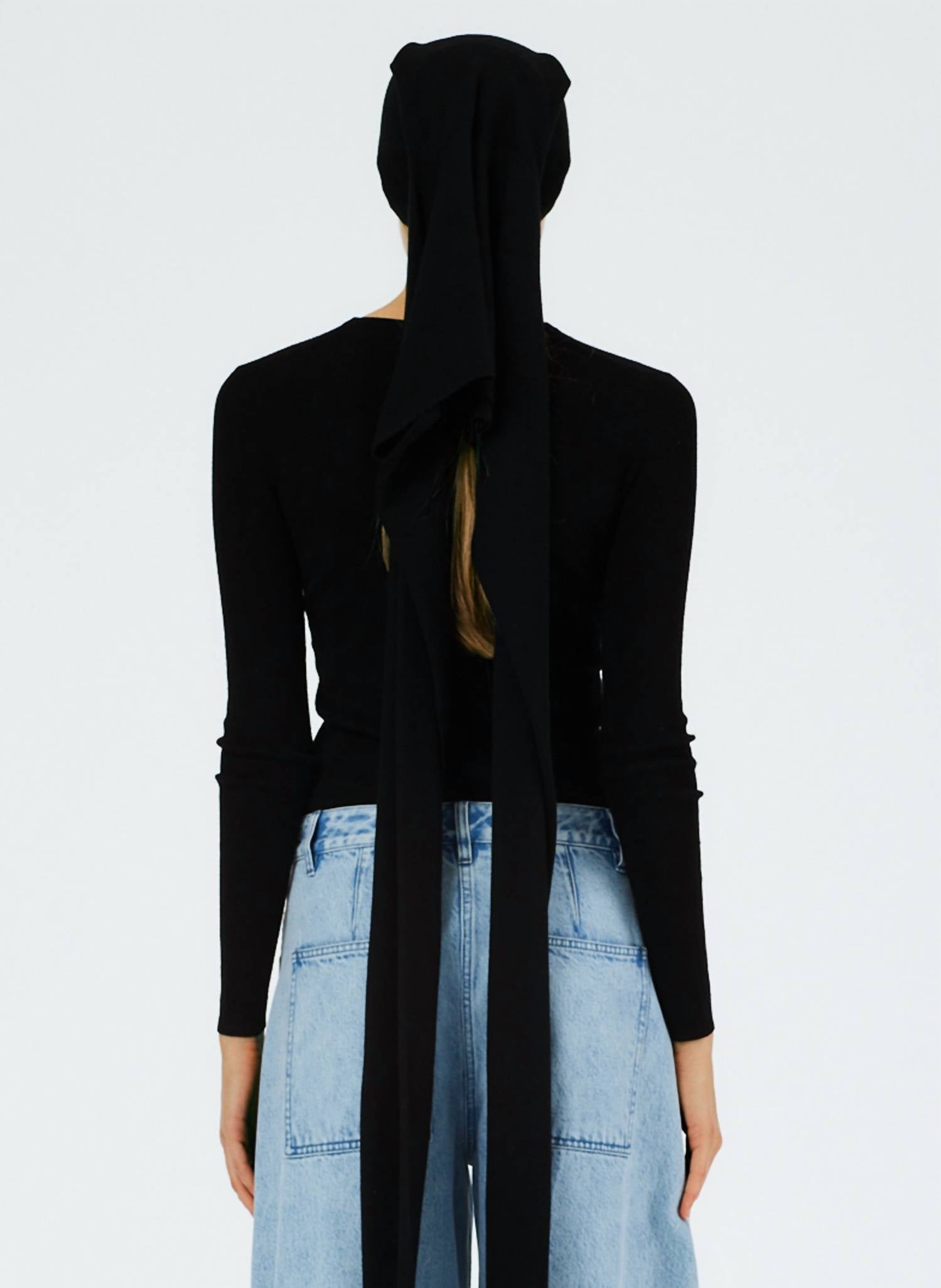 Add this to any outfit for a perfeclty polished look. Elevate your winter wardrobe with the Mele Turtleneck Toque Scarf by Tibi, a chic accessory that combines style with functionality. Crafted from 100% Merino Wool, this piece effortlessly adds warmth without the bulk, featuring a clever slit at the back perfect for a ponytail. Made in China, it is designed to be true to size and easy to layer. Care for this luxurious scarf by dry cleaning to maintain its quality.