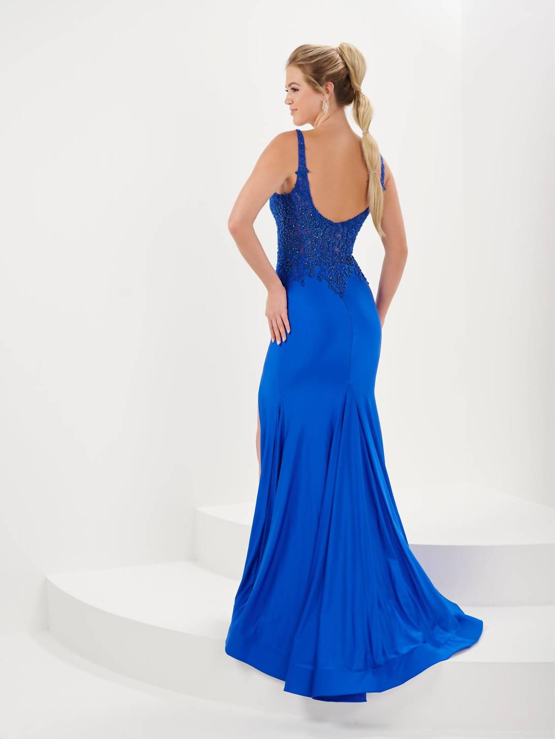 Tiffany Designs - Beaded Jersey Sheer Corset Slit Gown