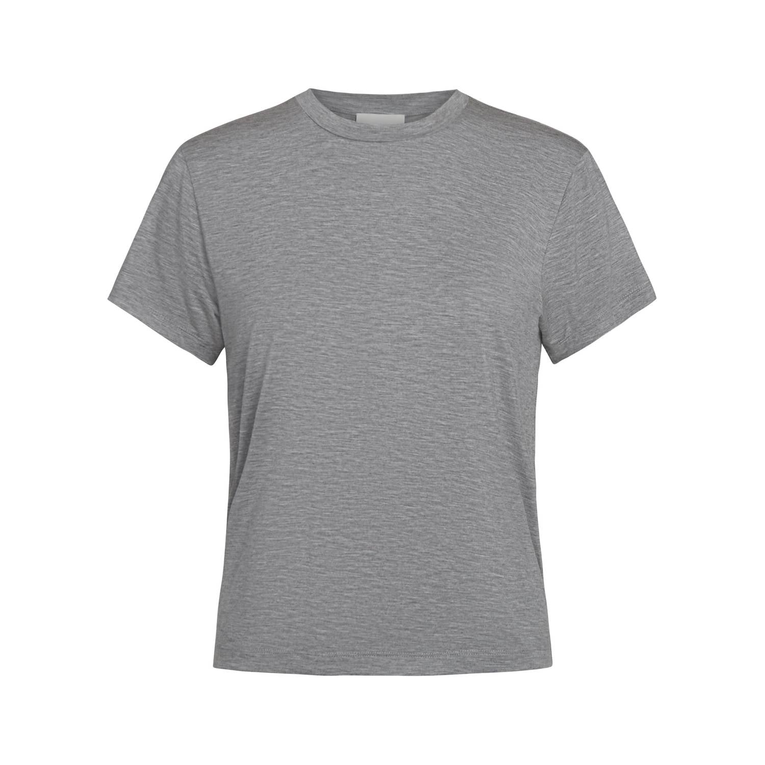The short sleeve tee you'll want in every color. Discover the Women's His Tee by TWP, a versatile piece in a chic Medium Heather Grey to elevate your casual wardrobe. This short sleeve tee, crafted from 95% bamboo and 5% elastane, offers a comfortable fit with its ultra-soft stretchy cotton tencel fabric. With a classic crewneck and pull-on closure, this solid-patterned tee is perfect for summer vacation styling. Care instructions are not provided for this garment.