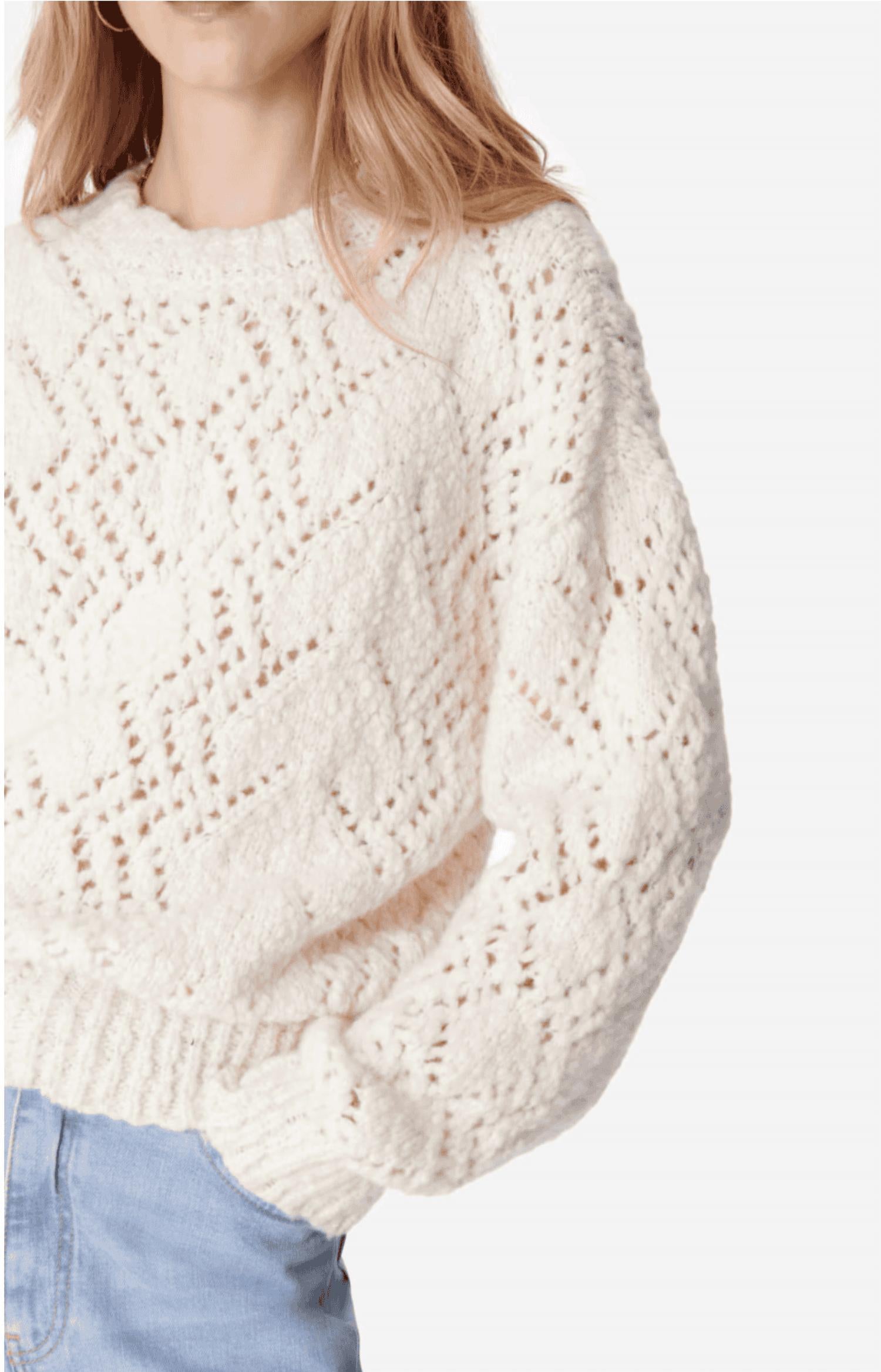 The ultimate go-to sweater, expertly crafted to provide the perfect combination of warmth and style. Its classic design and soft fabric make it a must-have addition to your wardrobe. Introducing the Eulalie Sweater by vanessabruno, a chic addition to your wardrobe in an elegant ecru color. This long-sleeve sweater, crafted from a luxurious wool blend including alpaca and polyamide, features a delicate openwork pattern and scalloped ribbed trim for added femininity. Its pull-on closure and crewneck design make it perfect for any occasion, from office to casual settings, with a textured finish that aligns with the preppy trend. Care instructions include hand washing for maintaining its quality and softness.