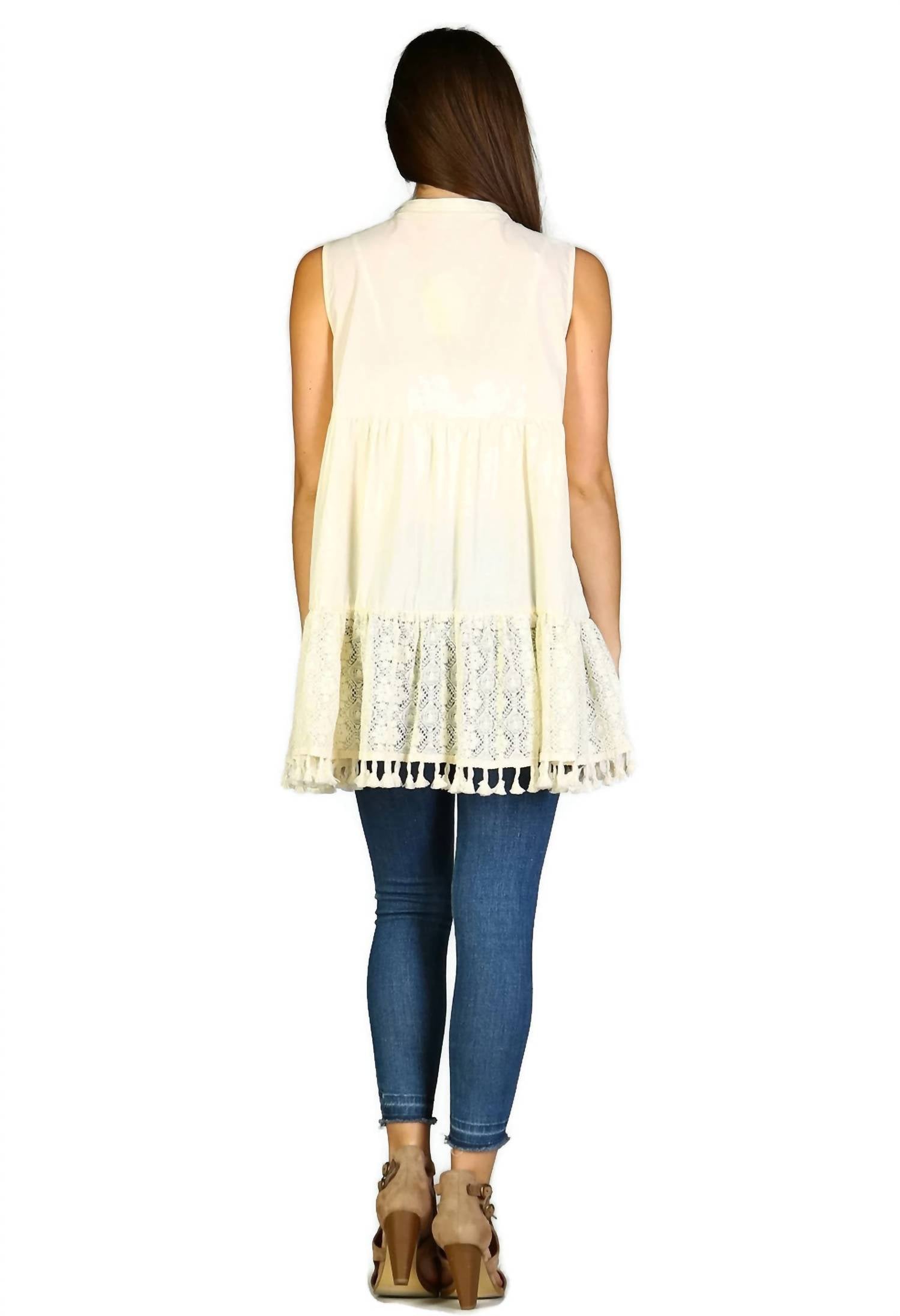 Velzera - Lace Fringe Embroidered Sleeveless Tunic