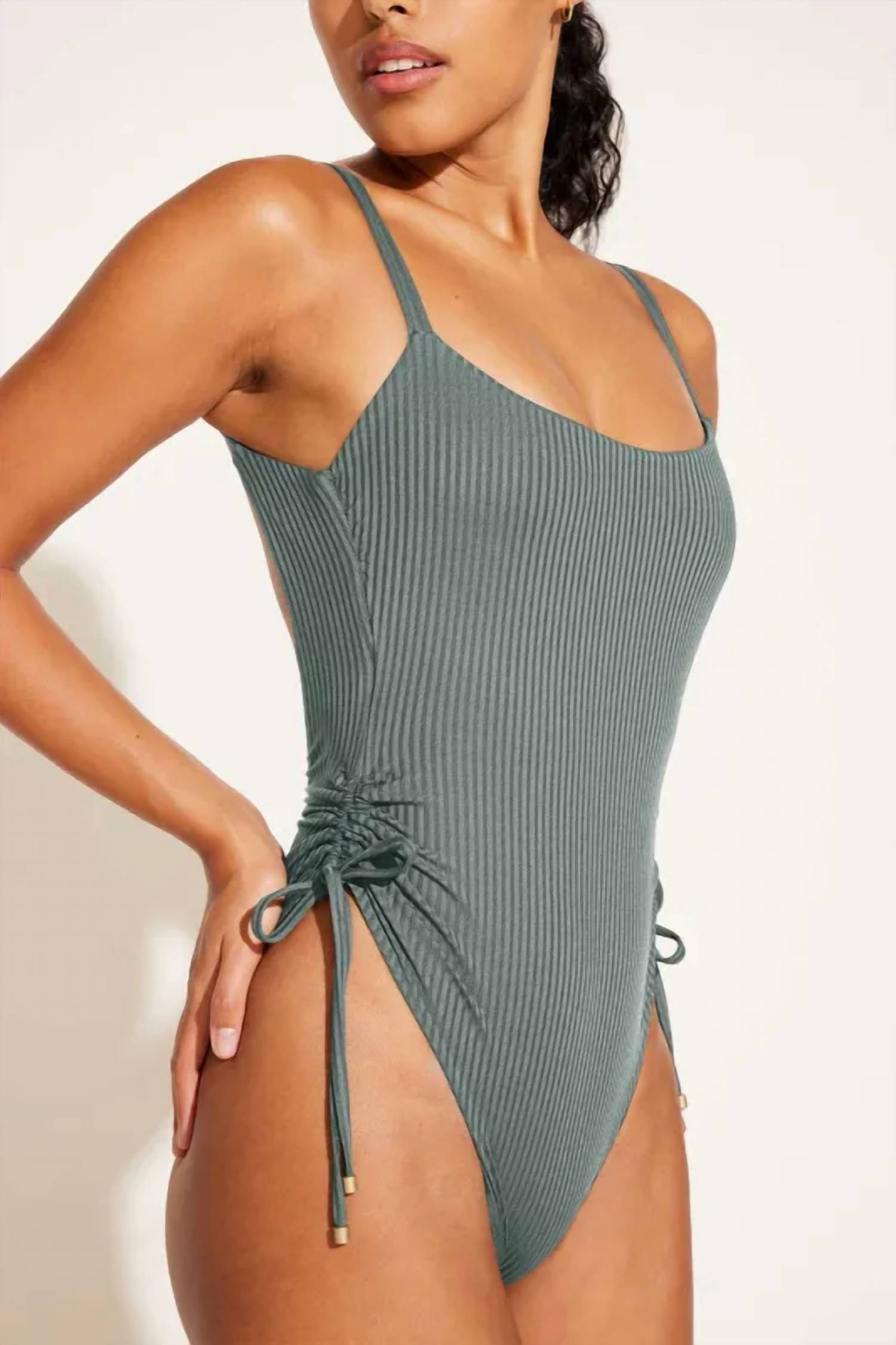 A one piece so chic you could even wear it as a bodysuit with your favorite pair of jeans. Experience the epitome of minimalist style with the Women's Gemma One Piece by Vitamin A in the Ecorib Sea Green hue. This textured swimsuit is perfect for summer vacations, offering classic coverage with a timeless appeal.