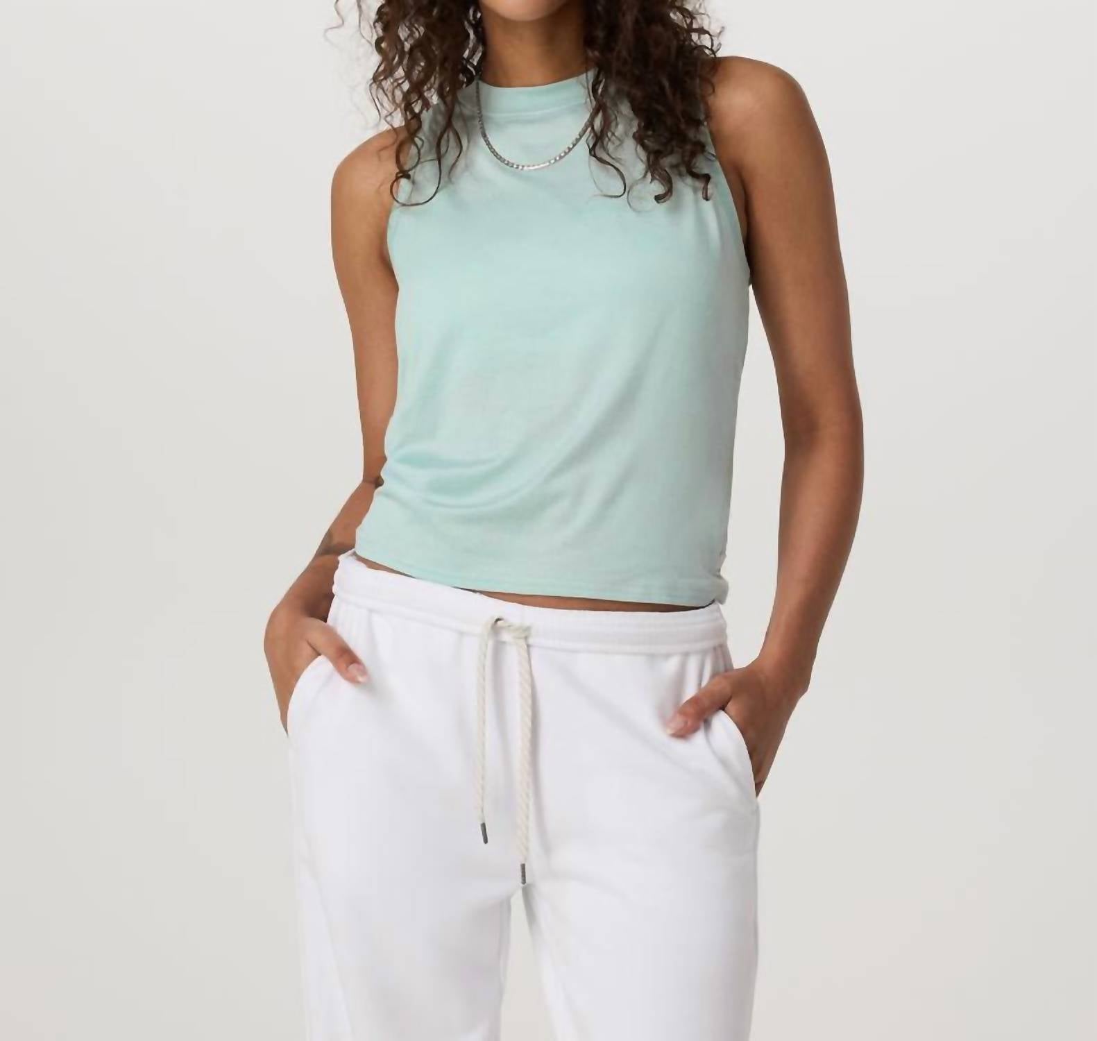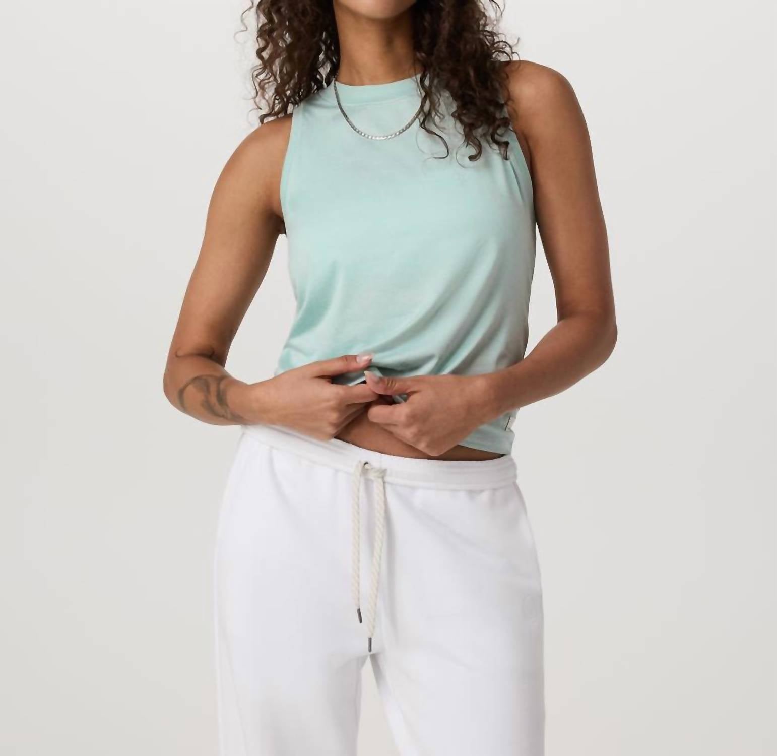 Fit, fabric and functionality. This tank top checks all the boxes. Introducing the Energy Tank Top by Vuori, crafted for stylish minimalism in a fresh Spearmint Heather hue. This women's sleeveless top offers unparalleled comfort and flexibility with a composition of 96% Polyester and 4% Elastane. It features a crewneck design and a convenient pull-on closure. Effortlessly care for this activewear essential with machine wash and tumble dry instructions.