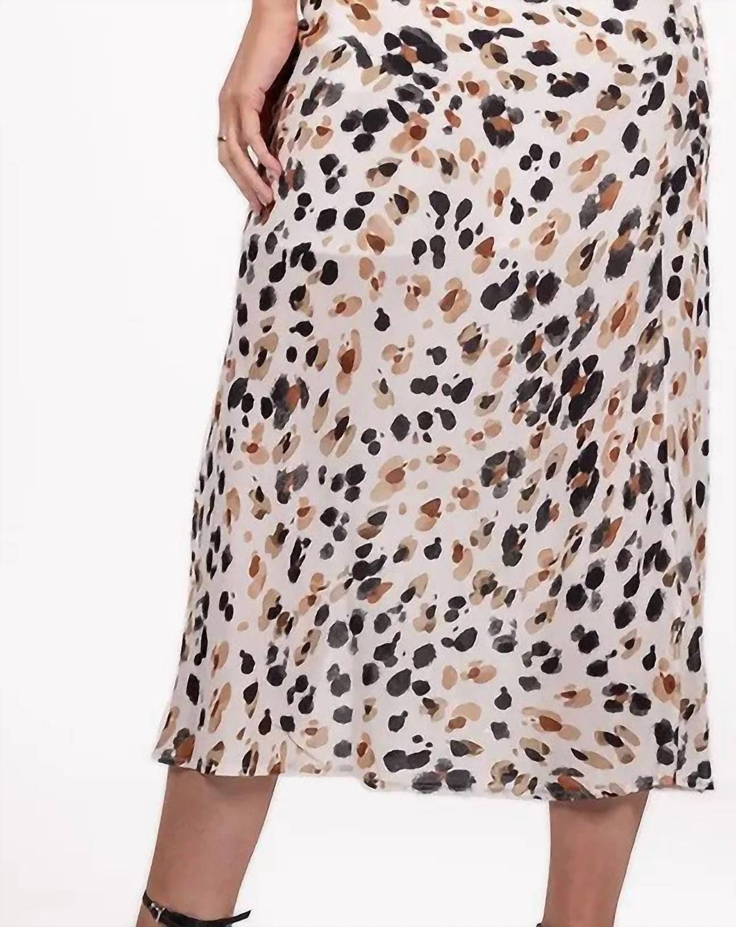 The midi length skirt is here to stay and we especially love this style. Introducing the Bailey Midi Skirt by Willa Story, a statement piece in a captivating leopard pattern that embodies boho chic elegance. Crafted from smooth satin, this skirt offers a luxurious feel, perfect for summer occasions such as a Thanksgiving holiday party. The pull-on closure adds a touch of convenience, making it an easy addition to your wardrobe. Note that specific care instructions are not provided.