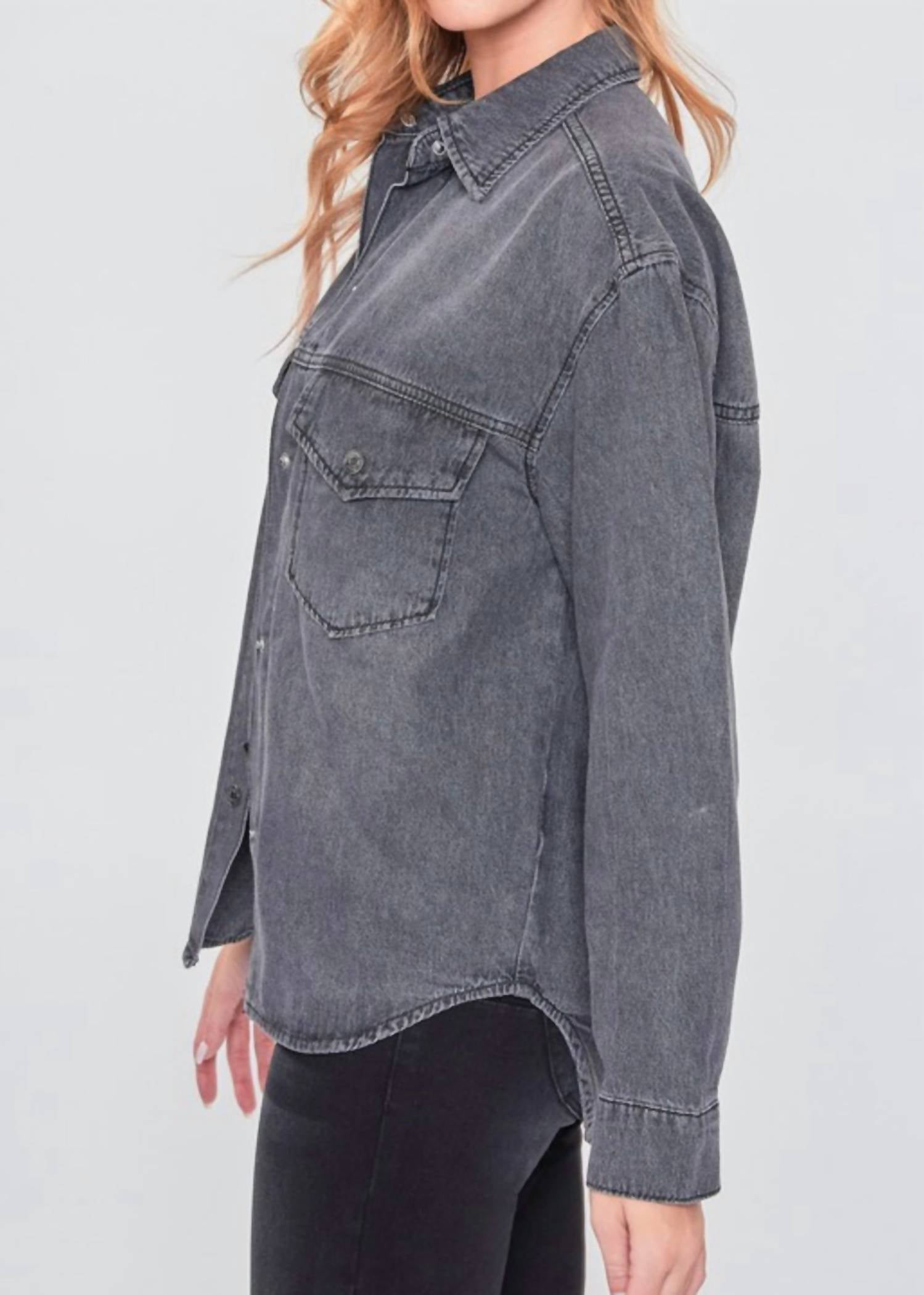 Perfectly tailored and soft to the touch. Elevate your wardrobe with the YMI Baguette Long Sleeve Denim Shirt, perfect for any occasion. Crafted from 100% cotton, this long sleeve shirt features an oversized fit and a snap button closure for effortless layering. With a length of 28 inches and a sleeve length of 22.5 inches, it offers comfortable coverage and style. Care instructions include hand wash cold and line dry, ensuring this piece remains a durable favorite for your spring capsule collection.