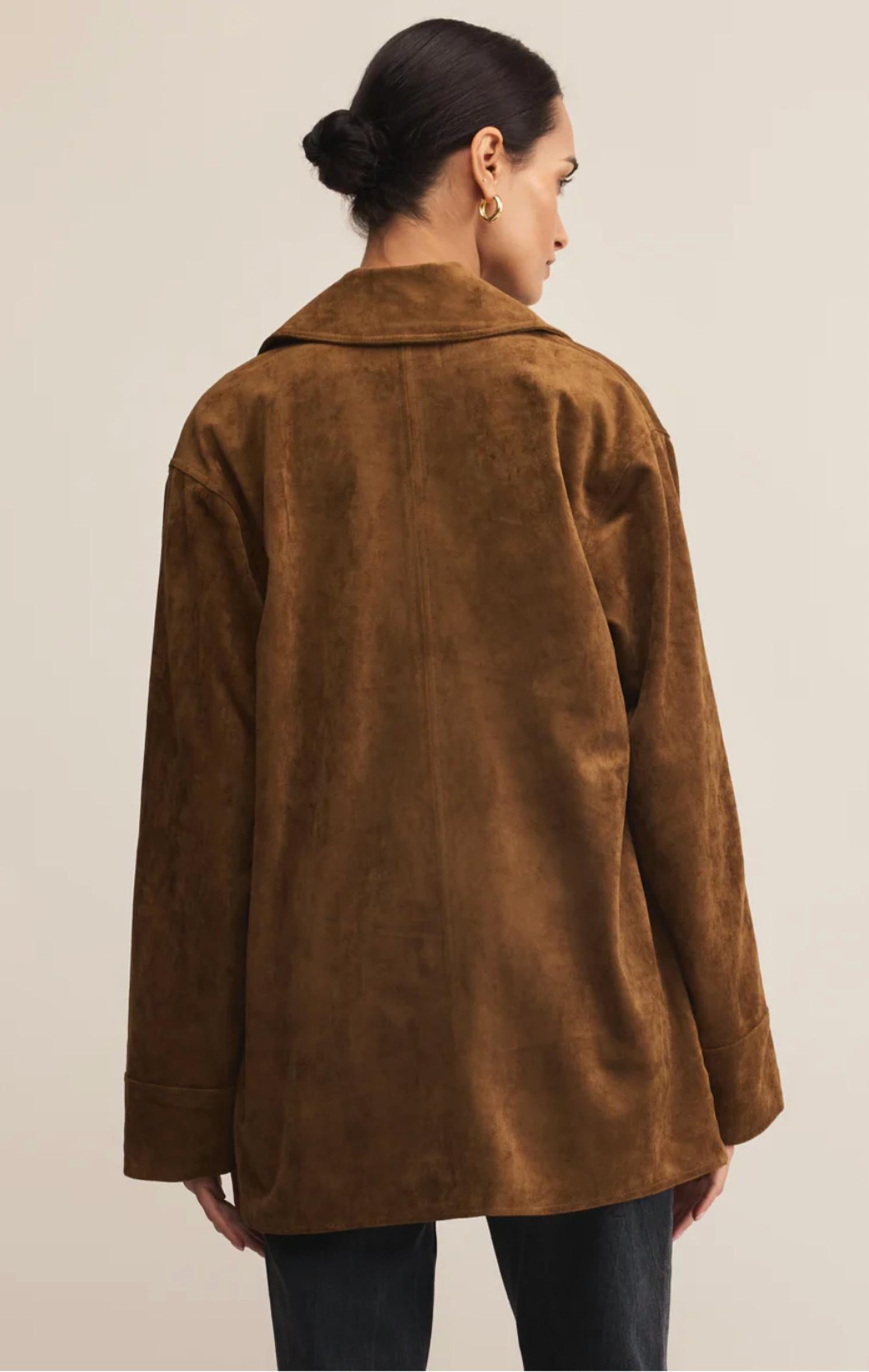 The ultimate cool-girl utility jacket. Meet the Decker Suede Chore Jacket by Z Supply, an exquisite fusion of ruggedness and elegance in a chic Coconut hue. This utility jacket is crafted from 100% polyester faux suede and features long sleeves and a collared neckline for a timeless appeal. With its midweight, relaxed fit and convenient patch pockets, it offers both style and practicality. Closure: Button closure. Care: Dry clean only, ensuring ease of maintenance, perfect for minimalist fall vacations.