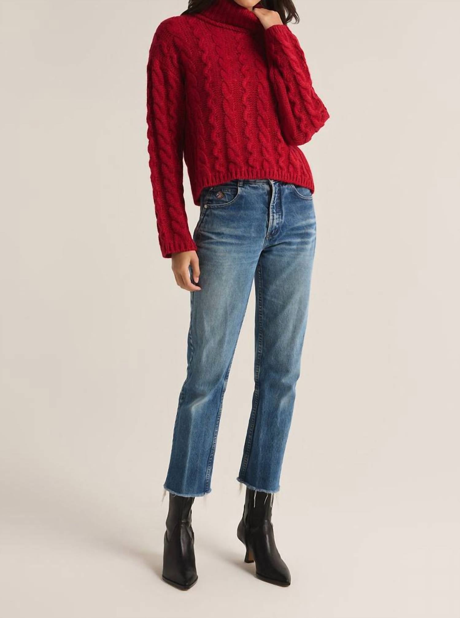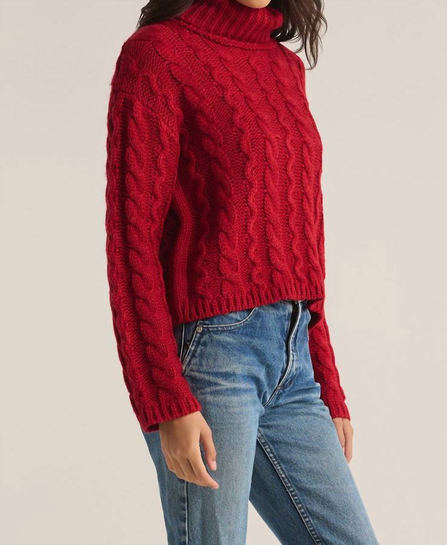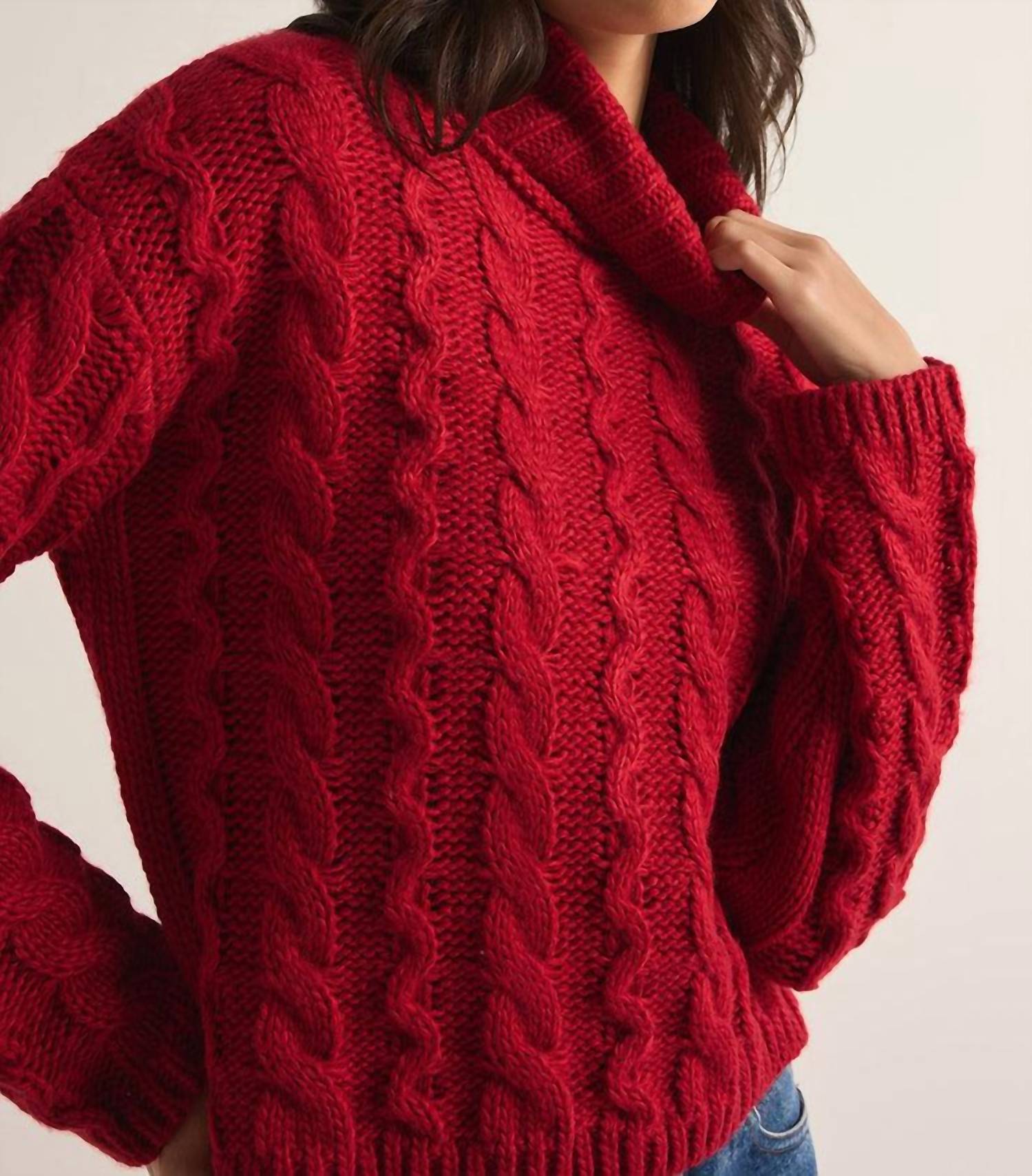 Fit to perfection and effortlessly chic. Embrace the cozy charm of the Tied To You Sweater by Z Supply in a vibrant Haute Red. This sweater showcases long sleeves and a classic turtleneck, crafted from 100% acrylic sweater yarns with a textured cable knit design. Designed for a regular fit, it's perfect for layering on chilly days. Care: Hand wash cold separately, reshape & lay flat to dry or dry clean. Closure: Pull on.