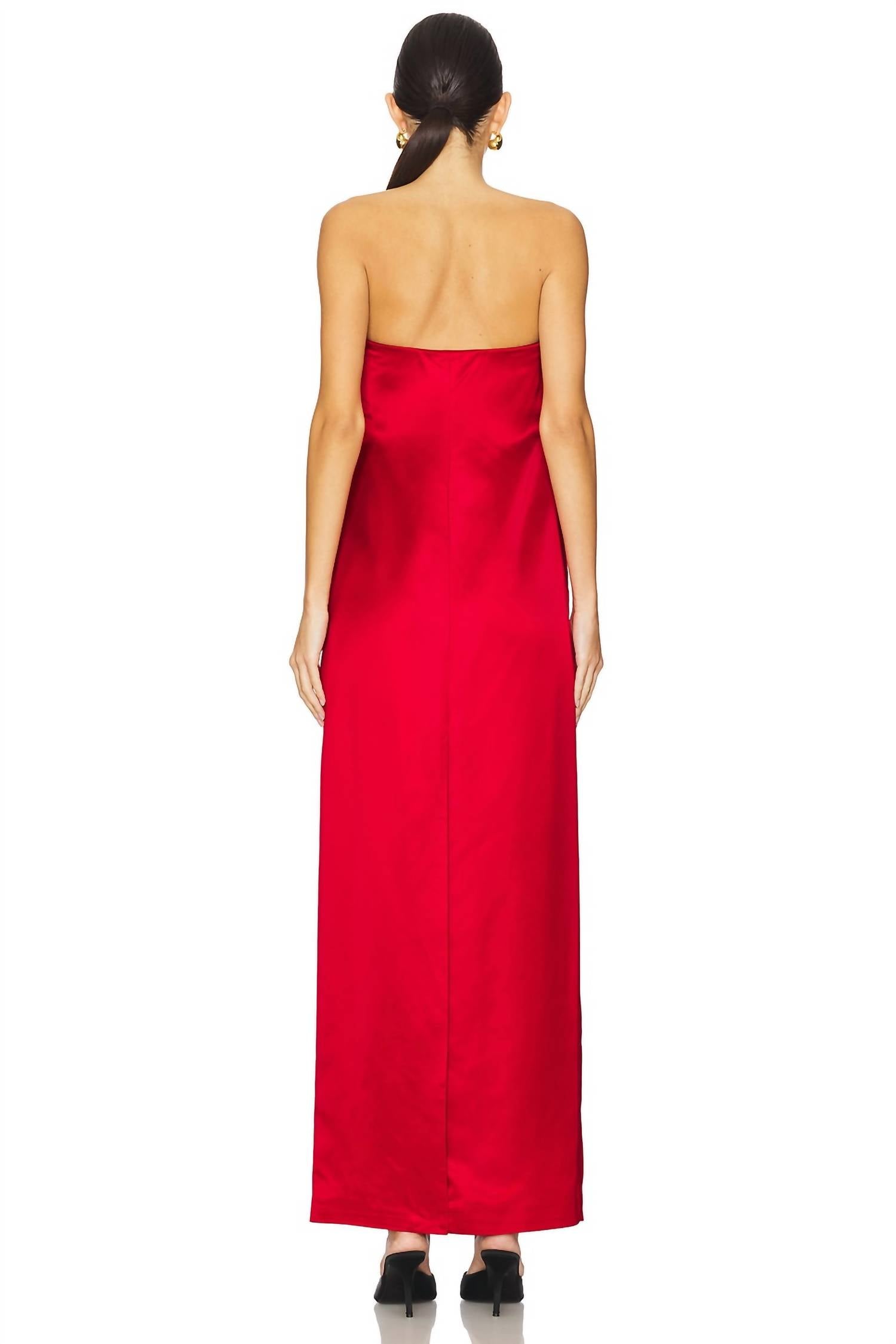 Meet the Ani Gown by A.L.C., a stunning statement piece in a bold Really Red hue. This strapless sheath silhouette is crafted from heavyweight satin with a boned bodice featuring a non-stick silicone grip trim and side seam pockets for added functionality. Its fully lined design is composed of 100% Viscose with a 96% Polyester, 4% Elastane lining, and a convenient hidden back zip closure. Made in Vietnam, this gown measures 58" in length and requires dry cleaning to maintain its exquisite finish.