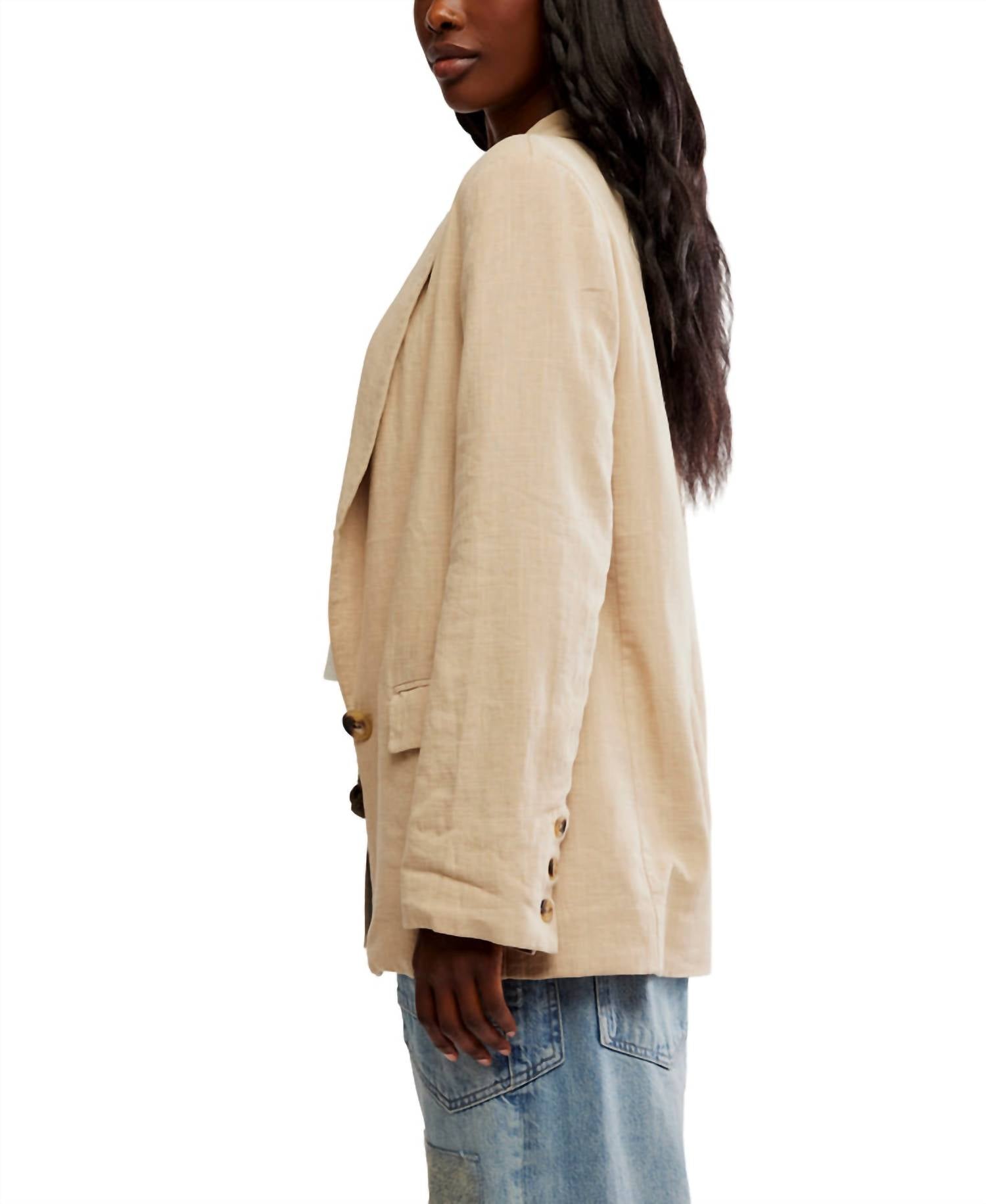 An elevated version of your favorite classic blazer. Expertly crafted from a 52% linen and 48% viscose blend, this imported blazer offers long sleeves and a stylish one-button closure. Designed with peaked lapels, three-button cuffs, front flap pockets, and a back vent, it's both fashionable and functional. Care for this lined piece is simple with machine wash and line dry instructions, making it a versatile addition to any women's ensemble.