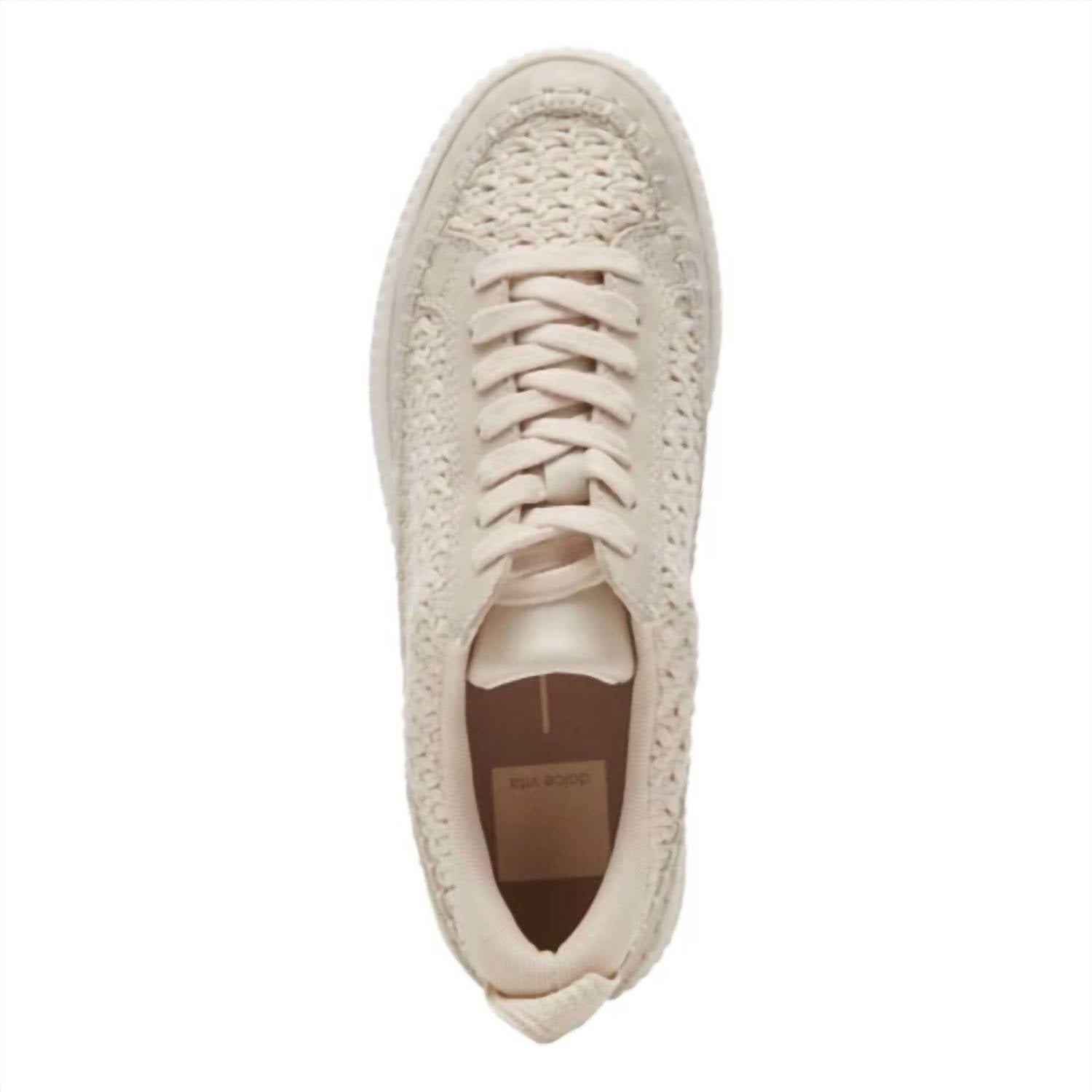 Get your daily steps in with these adorable sneakers. Step out in style with the Women's Nicona Sneakers by Dolce Vita, perfect for your on-the-go lifestyle. Crafted with a woven knit, synthetic, and suede upper, these sandstone-colored sneakers deliver both comfort and modern flair. Featuring a rubber outsole and synthetic sock with textile lining, they ensure durability and support. Made for adult women, these medium width, round toe sneakers with a platform heel bring a fresh look to any casual outfit.