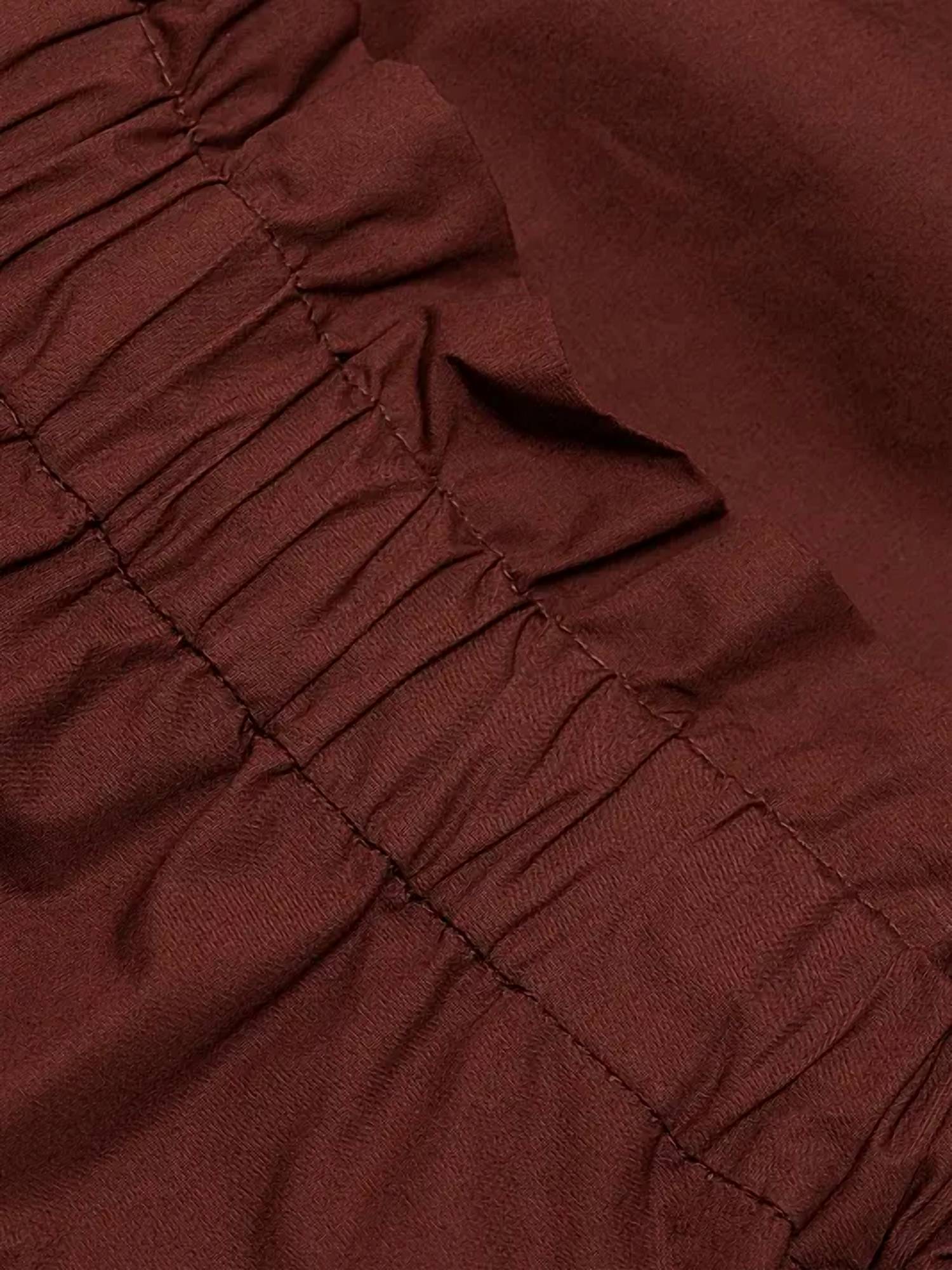 Match these cargo shorts with your favorite tank or tee for the perfect laid-back look. Introducing the Nate Relaxed Fit Cotton Shorts by A.L.C., a perfect blend of comfort and style for your wardrobe. These women's shorts in Dark Bosco are crafted from soft 100% cotton and feature a ruffled, elasticized waistband for a touch of flair. With side slip pockets for convenience and a relaxed fit design, they offer an easy pull-on closure. Measuring an inseam of about 2.25 inches and with a leg opening of approximately 30.75 inches, these minimalist shorts are ideal for spring holiday parties. Please dry clean only. Model measurements: 5'10" tall.