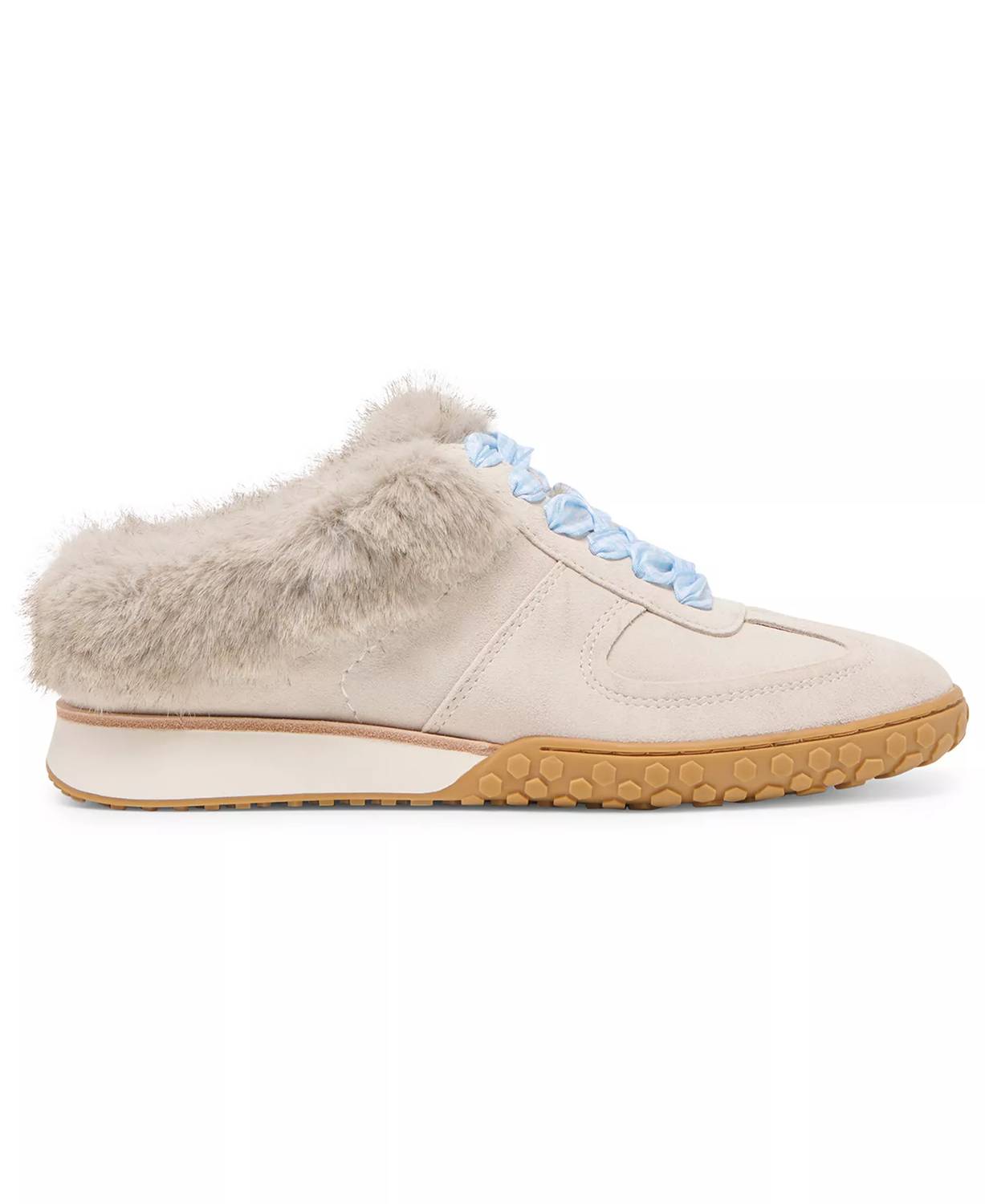 Cute, functional, and comfortable. These sneakers check all the boxes. Step up your sneaker game with the Women's Izzey Plush Sneakers by Dolce Vita, offering a chic, retro-inspired look in Light Taupe Suede. These slip-on sneakers feature a cozy polyester trim and a stylish round toe, combining leather upper with mesh lining and a man-made outsole for durability. Spot clean. Imported.