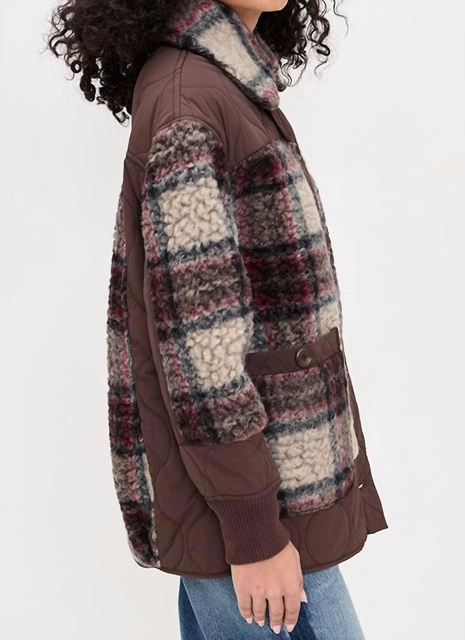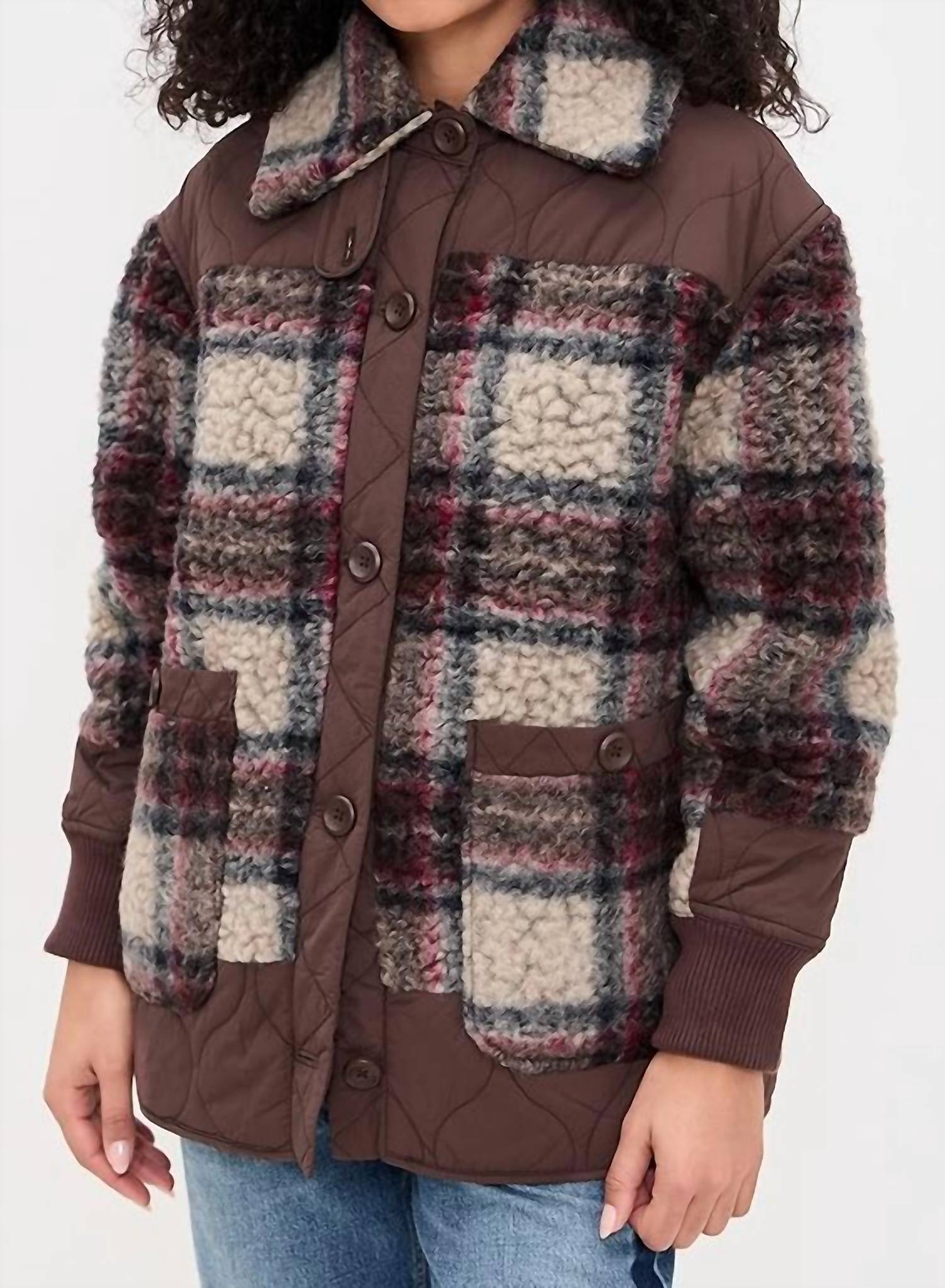 Nothing is cooler than this vintage inspired bomber jacket. Elevate your winter wardrobe with the Sana Quilted Bomber Jacket by Free People, in a striking Pomegranate Combo. This women's jacket boasts a cozy 75% wool, 25% polyester with a long sleeve design and a classic collar. Adorned in a Plaid & Check pattern, it features a button closure and functional pockets for practicality. Offering warmth with its lined interior, it is machine washable for easy care, making it an ideal choice for vacation getaways and New Year's Eve celebrations.